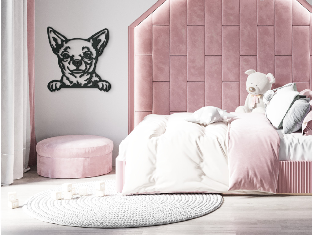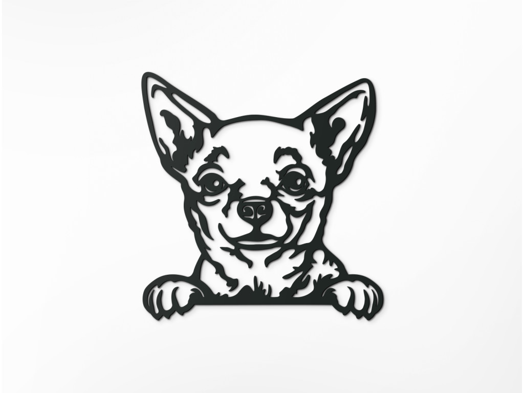 A legkisebb kutyafajtát, eredeti nevén csivavát, törpe termet, alma alakú fej, kerek, sötét szemek és denevérszerű fülek jellemzik. Szőrösebb párja egy pomerániai kutyafaj. A csivava egy bújós társ, akit kicsik és idősek egyaránt szeretnek szerte a világon. A Dr. Szöszi filmeknek köszönhetően különösen ismertté vált. Vékony teste és jellegzetes filmes ábrázolása miatt kézben vagy táskában tartott kutyának is nevezik. A világos szőrzet kontrasztban áll a fekete pofával és a nagy szemekkel, melyeket a faképünk is hűen megragad többféle dizájnban, melyeket ízlése vagy belső terei szerint választhat ki. A csivava így egyedi dísz lehet a gyerekszoba falán vagy a kedvence számára fenntartott ágy fölött.