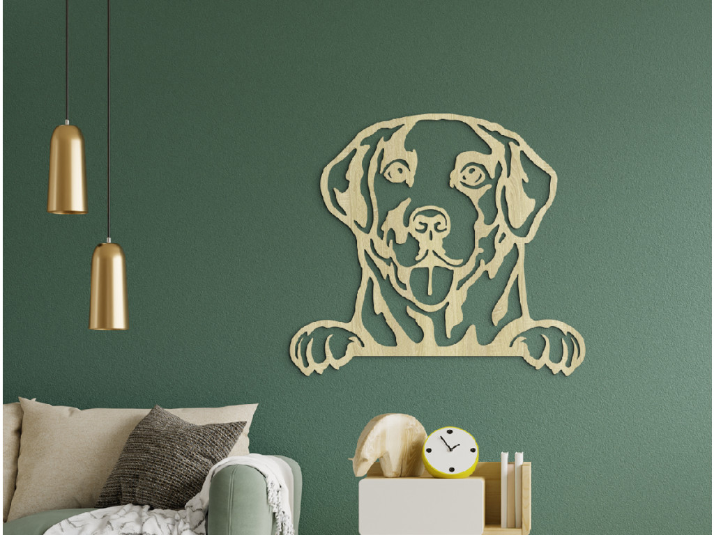 A labrador retriever barátságos megjelenésű, rövid szőrrel és széles koponyával, hatalmas nyakkal. A mosolygós arcképet fából készült portréban rögzítjük, akár 3 különböző méretben és 8 színben. Egy barátságos labrador nyugtalan mancsokkal éjjel-nappal hűségesen őrzi gazdáit a folyosón vagy a gyerekszobában.