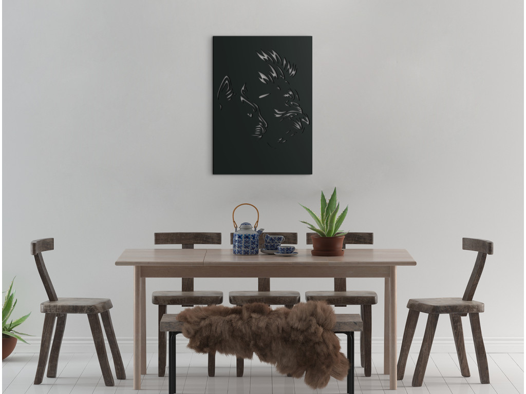 Egy oroszlánpárt ábrázoló fából készült fakép tökéletesen megragadja e lenyűgöző vadállatok büszkeségét és fenségét. A matricán két oroszlán látható, az egyikük vastag sörénnyel rendlekezik. A dekoráció remek ajándékötlet a modern otthoni kiegészítők szerelmeseinek.