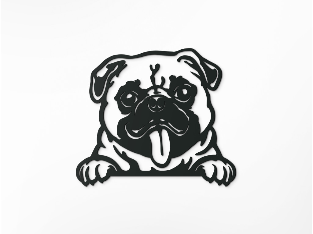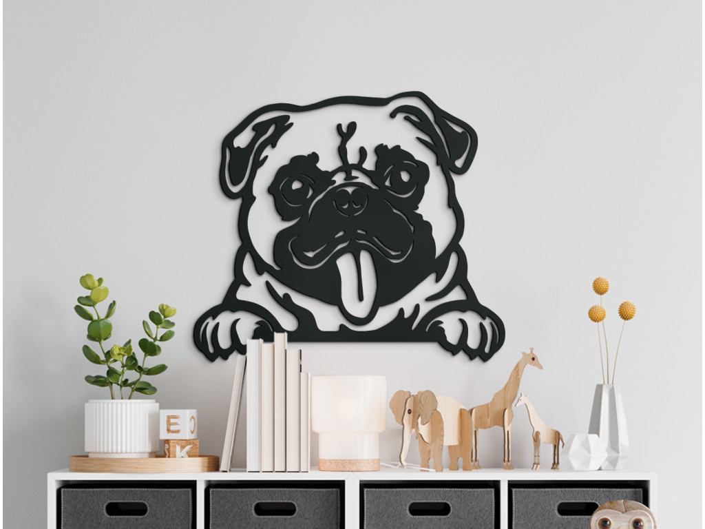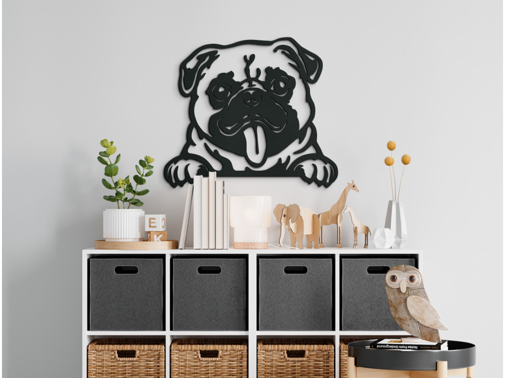 Az aranyos és összetéveszthetetlen arckifejezés éppoly híressé tette ezt a kutyát, mint barátságos és társaságkedvelő természete. A mopszokat kis termetüknek, jellegzetes ráncainak, lógó fülének és csavart farkuknak köszönhetően kicsik és nagyok egyaránt szeretik. A világosbarna szőrzet kontrasztban áll a fekete pofával és a nagy szemekkel, melyeket a fa hasonlat is hűen megragad több kivitelezésben is. Kiválaszthatja őket ízlése vagy belső terei szerint. A mopsz így a családtagok hűséges társa és egyben egyedi dekorációja lesz a falon.