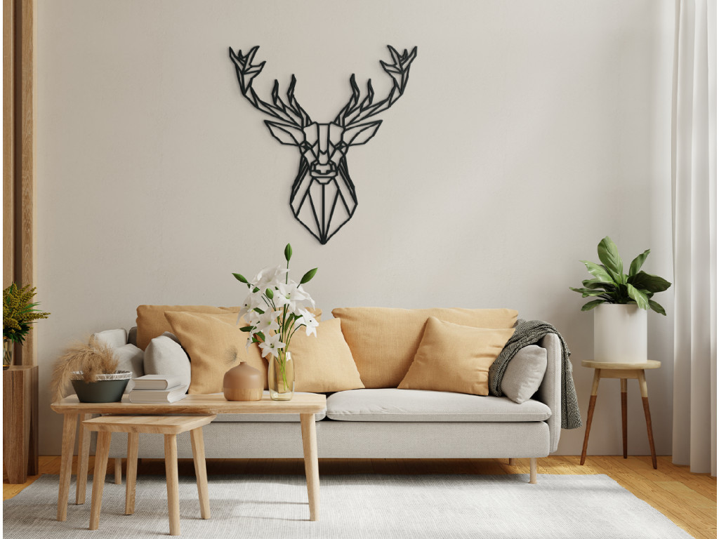 A sokszögű szarvas érdekes fali dekorációt üdítően innovatív dizájn jellemzi. Egy szarvas feje villás agancsú, de atipikus sokszögű kivitelben. Ízlés szerint többféle színváltozat közül választhat.