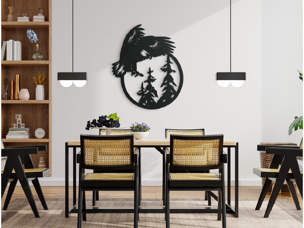 A Támadó sas falmatricát modern és klasszikus enteriőrbe is felragaszthatja. A fából készült díszítés a csodálatos madárkirállyal az egész szobát divatos dizájntérré varázsolja. A kép a hegyek szerelmeseinek, vadászoknak, turistáknak ajándékként is alkalmas.