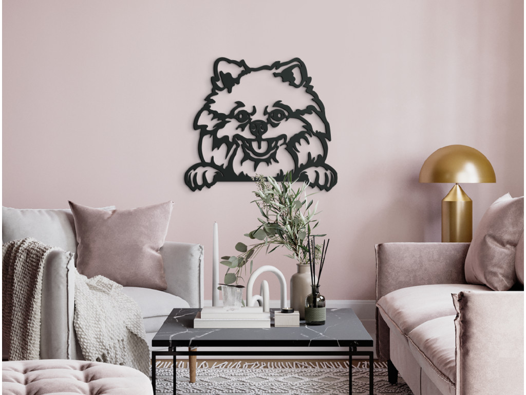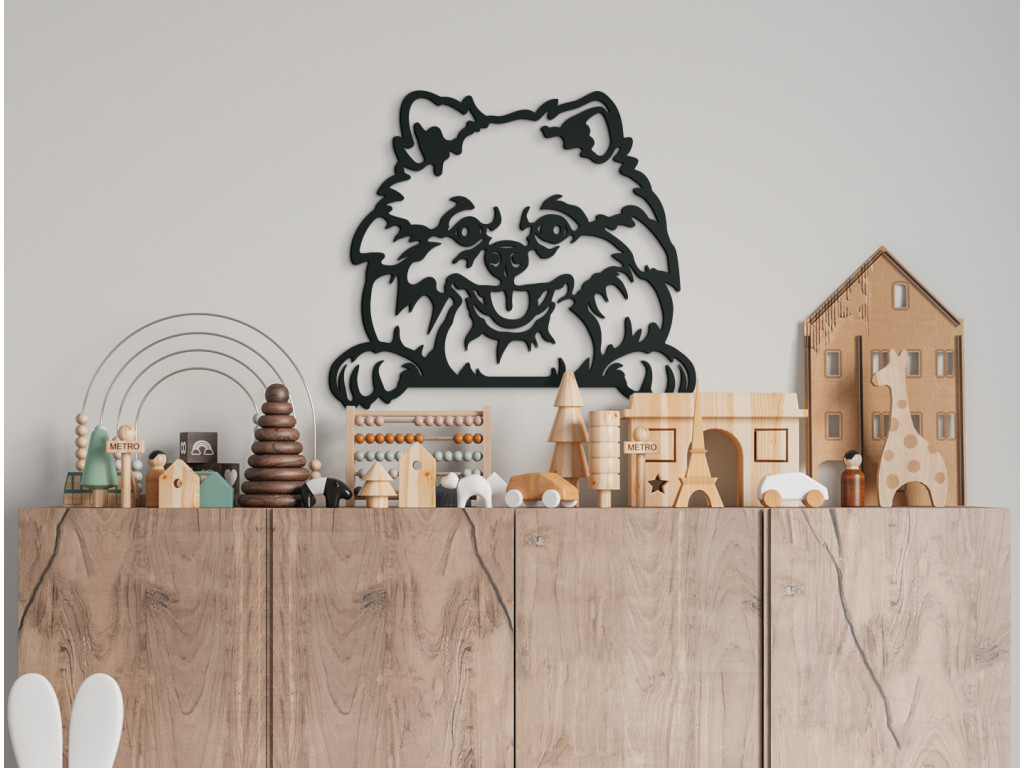 A kis vidám barát alakja ne csak a pomerániai spicc tulajdonosok arcára csal mosolyt, hanem mindenkiére, aki szereti a négylábú társakat. A fából készült kép hűen örökíti meg a kutya vonásait, felálló füleit, hosszú vastag szőrét és szemtelen mancsait 3 különböző méretben és 8 színben. A belső térben a törpespicc matrica az ágya fölött vagy a gyerekszobában tűnik ki a legjobban.