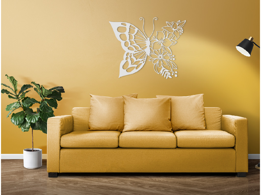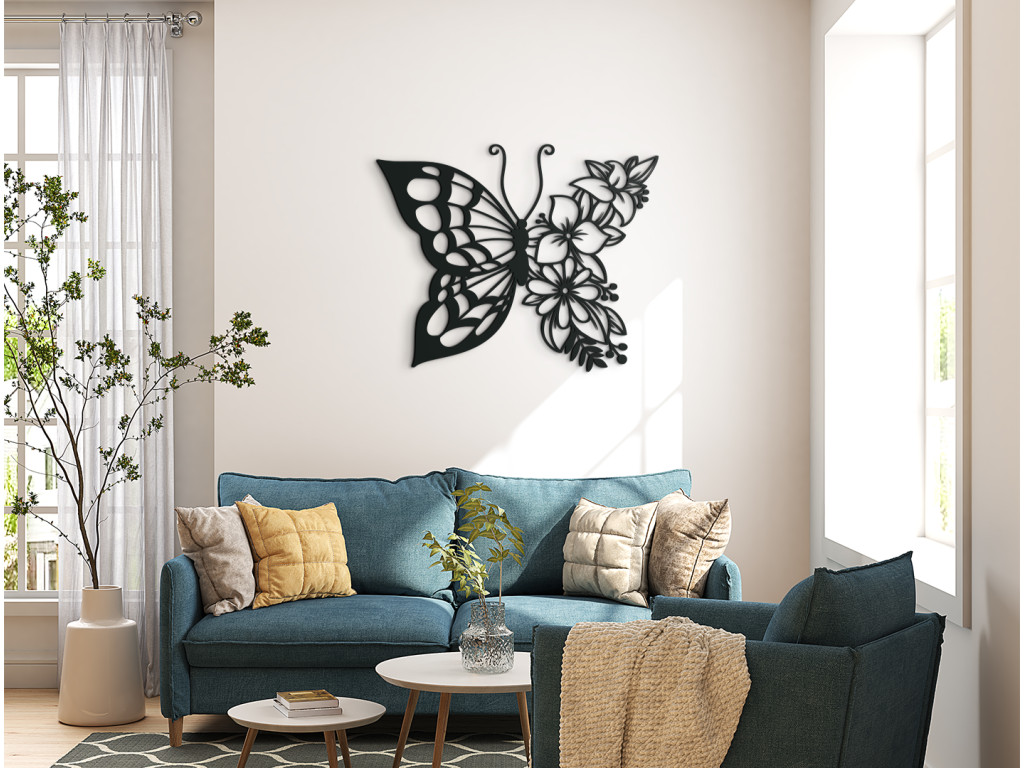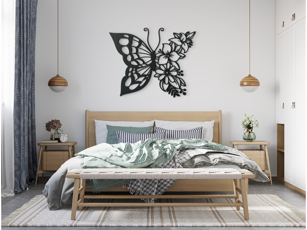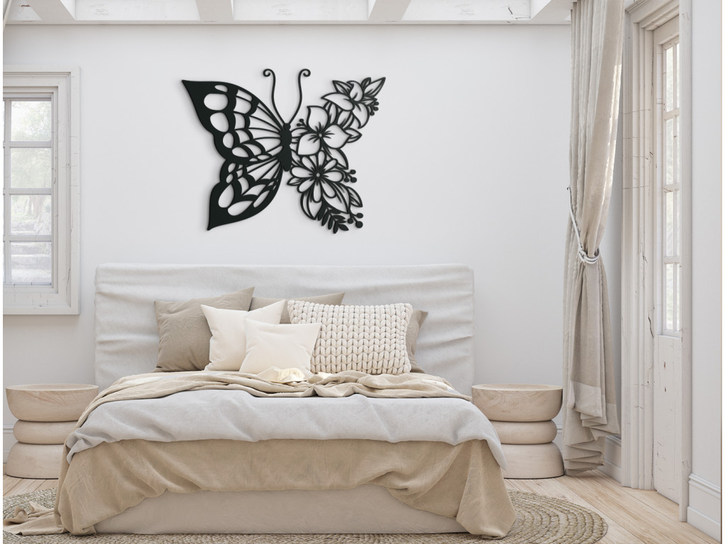 A pillangó romantikus, fából készült falmatrica formájában való megjelenítése gyönyörűvé és hangulatossá teszi a szoba üres falait. A virágos pillangó mindenki számára megfelelő dekoráció, aki szereti a virágokat és a pillangókat, de a nyüzsgő természet kedvelőinek és az absztrakt művészethez értő embereknek is.