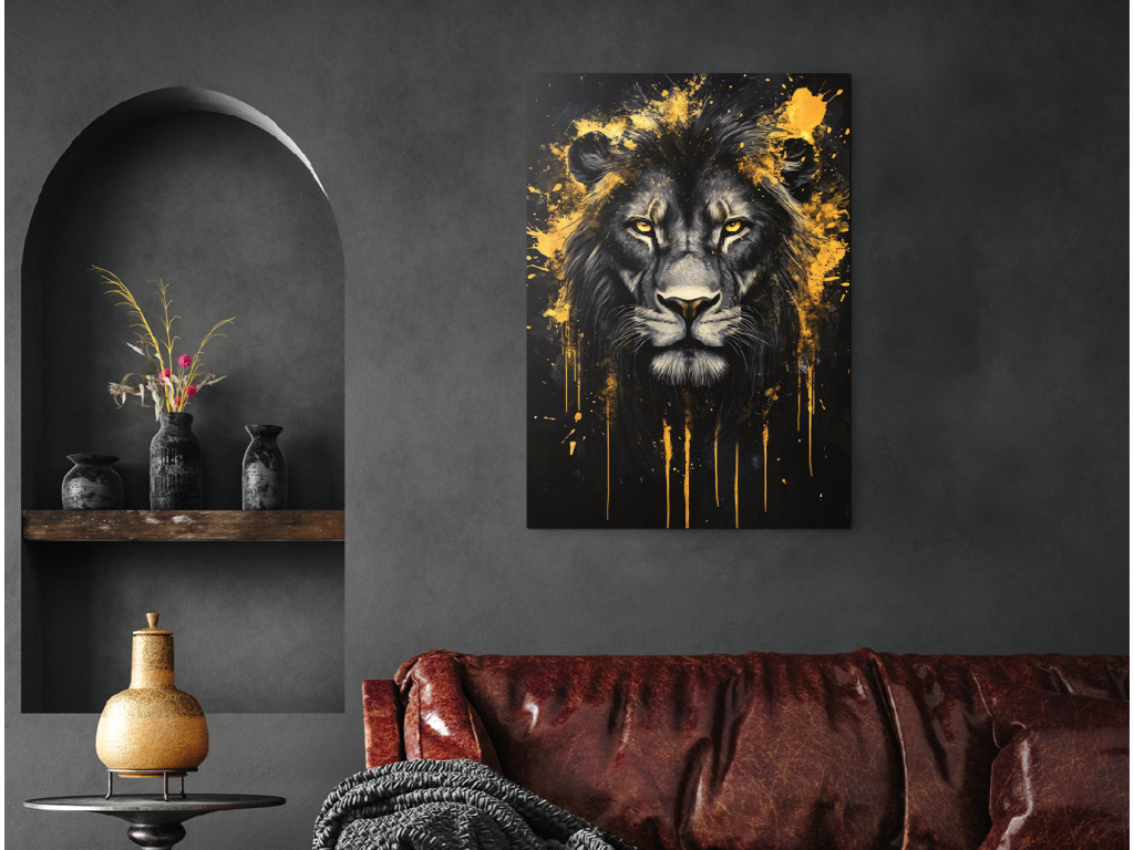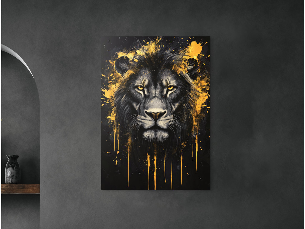 Az Oroszlán lelke egy modern, drámai töltetű kép, amely egy elszánt tekintetű fiatal oroszlánt ábrázol, amelyből erő, koncentráció és féktelen energia érződik. A sötét háttér a sziluett erejét hangsúlyozza, míg a feltűnő sárga absztrakt elem feszültséget és robbanékonyságot kölcsönöz a kompozíciónak. A festmény a természet vadságát ötvözi a modern esztétikával, és a növekvő erőt, a bátorságot és a kihívásokkal való szembenézésre való készséget szimbolizálja. Nagyszerű domináns elemként egy karakteres enteriőrben.