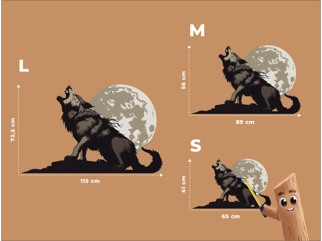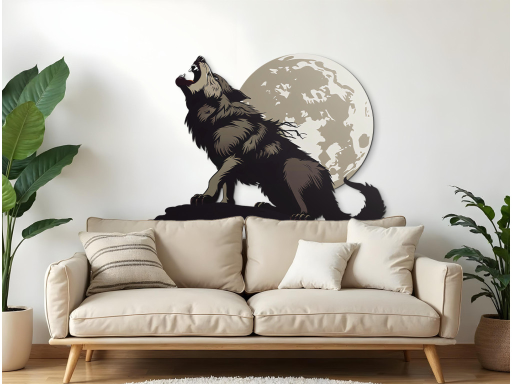 A Farkas a holdnak üvölt falikép stilizált jelenetben ábrázolja a hatalmas hold felé üvöltő farkast. A sötét szőrtónusok és a dinamikus vonalvezetés a erő és feszültség érzetét keltik, miközben a motívum a szabadságot, a magányt és a természet és az éjszaka ősi kapcsolatát idézi meg. Ideális választás olyan enteriőrbe, ahol a karakteres vizualitás fontos szerepet kap.