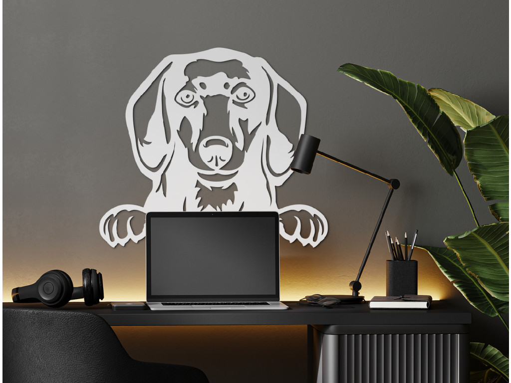 Az imádnivaló tacskó még fa formájában is tetszeni fog ennek a tulajdonosainak. A fali modern 3D kutyamatrica a 8 elérhető színváltozat közül bármelyikben tökéletesen megállja a helyét. Hűen örökíti meg egy tacskó portréját elölről 3 különböző méretben, így minden családtag számára társaságot tud nyújtani a belső térben.