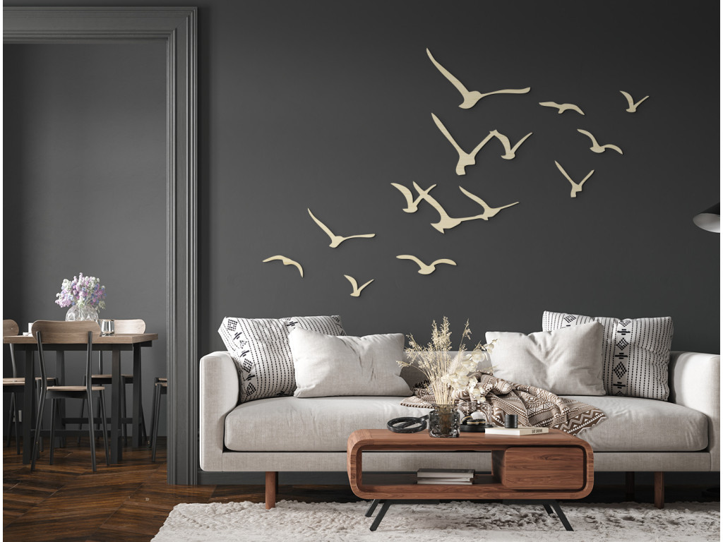 A több részből álló Madárraj falmatrica könnyedséget és mozgásszabadságot visz otthonába. Az egyes szegmenseket saját fantáziája szerint rendezheti el, egyedi hatást érve el. Ez a variálhatóság bármilyen teret feldob, és finom, természetes stílust kölcsönöz neki.