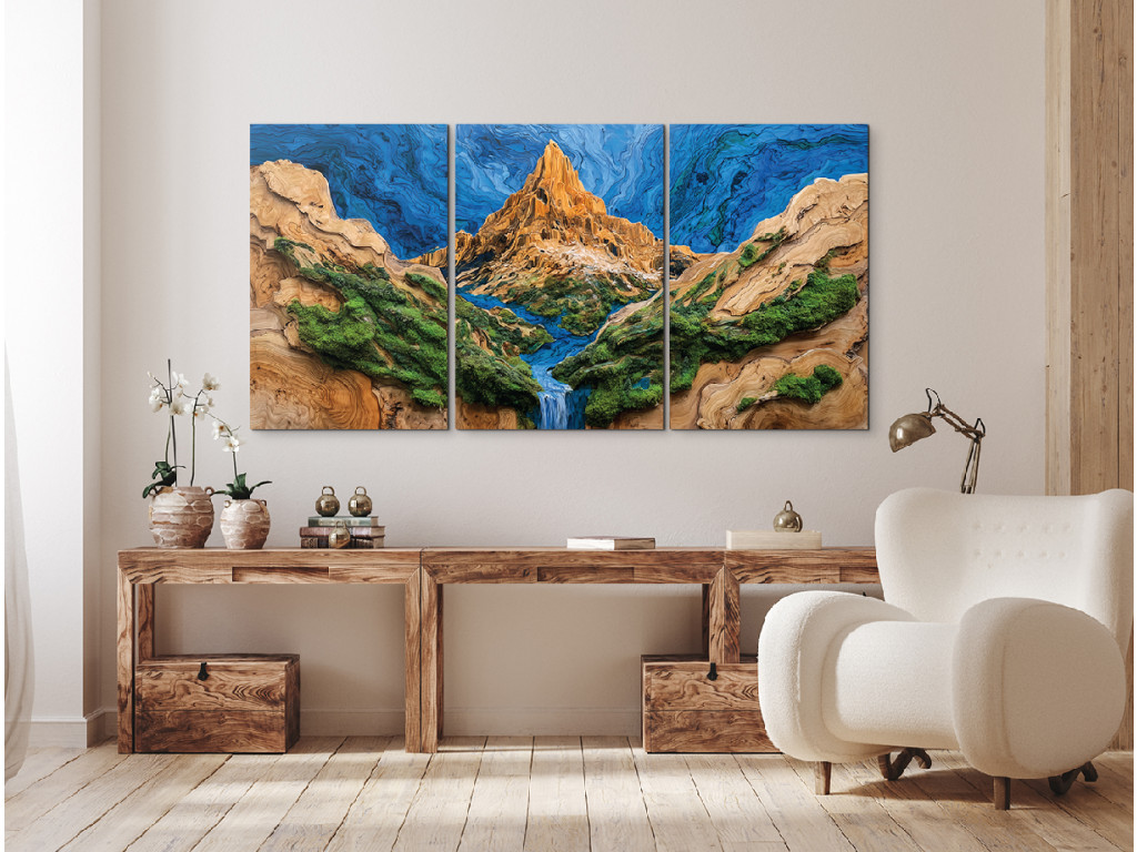 A Háromrészes mohahatású kép Érintés a természet szépségét és a modern UV nyomtatás előnyeit egyesíti. A klasszikus mohaképekkel szemben alacsonyabb árat, egyszerűbb karbantartást és hosszan élettartamot kínál. A tökéletes imitációnak köszönhetően élethűen hat, friss zöld akcentust ad a térnek. Modern elegancia egy tartós képen, amely sokáig megőrzi megjelenését.
