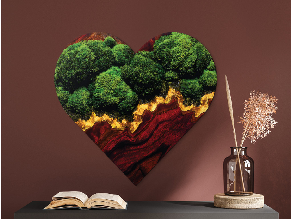 Szívalakú mohahatású kép Összekapcsolódás (UV-nyomat)