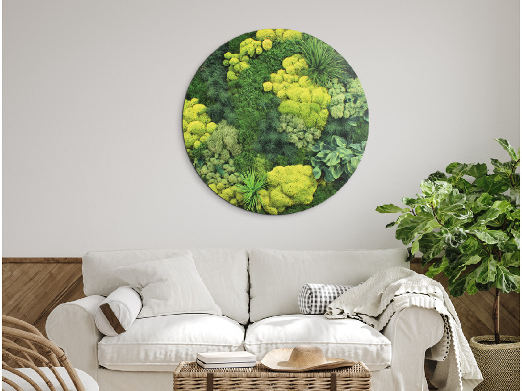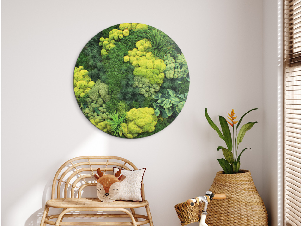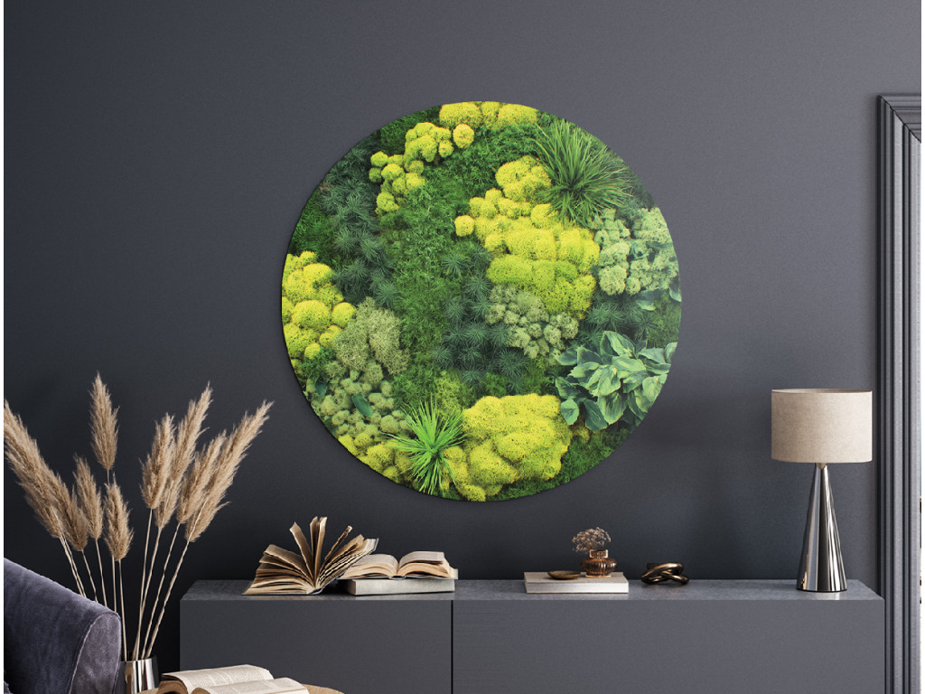 A Zöld kerek mohahatású UV nyomat kép a természet szépségét a modern technológiával és praktikummal ötvözi. A klasszikus mohaképekhez képest alacsonyabb áregyszerű karbantartás és hosszan tartó tartósság jellemzi. A tökéletes imitáció miatt élethű és autentikus hatást kelt, a térnek kellemes zöld akcentust ad. Lépj a modern elegancia felé, és válassz egy nyomatot, ami tényleg tartós.