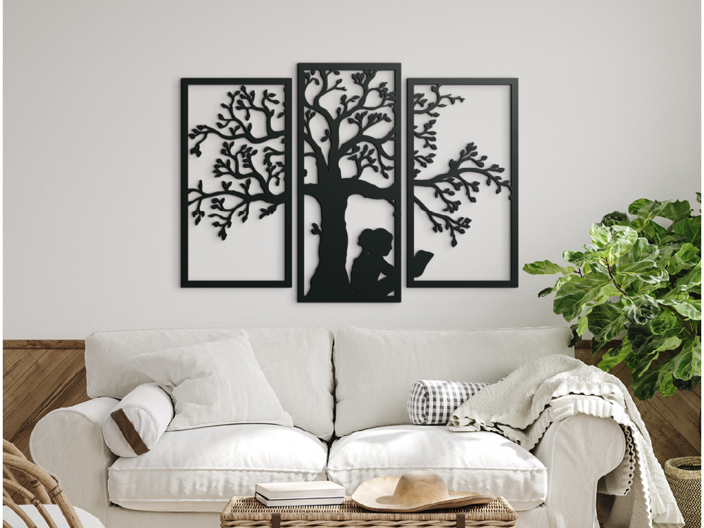 A Lány egy fa alatt egy három darabos kép, amely a csend és a béke pillanatát ragadja meg, ahol az ember menedéket talál egy fenséges fa alatt. Mindenki meglátja benne a saját történetét, dinamikus és egyben harmonikus kompozíciót hozva létre, amely tele van szimbolikával és jelentéssel. Ez a díszítőelem ideális egy hangulatos és inspiráló légkör megteremtéséhez, ahol ellazulhat és új energiára tehet szert.
