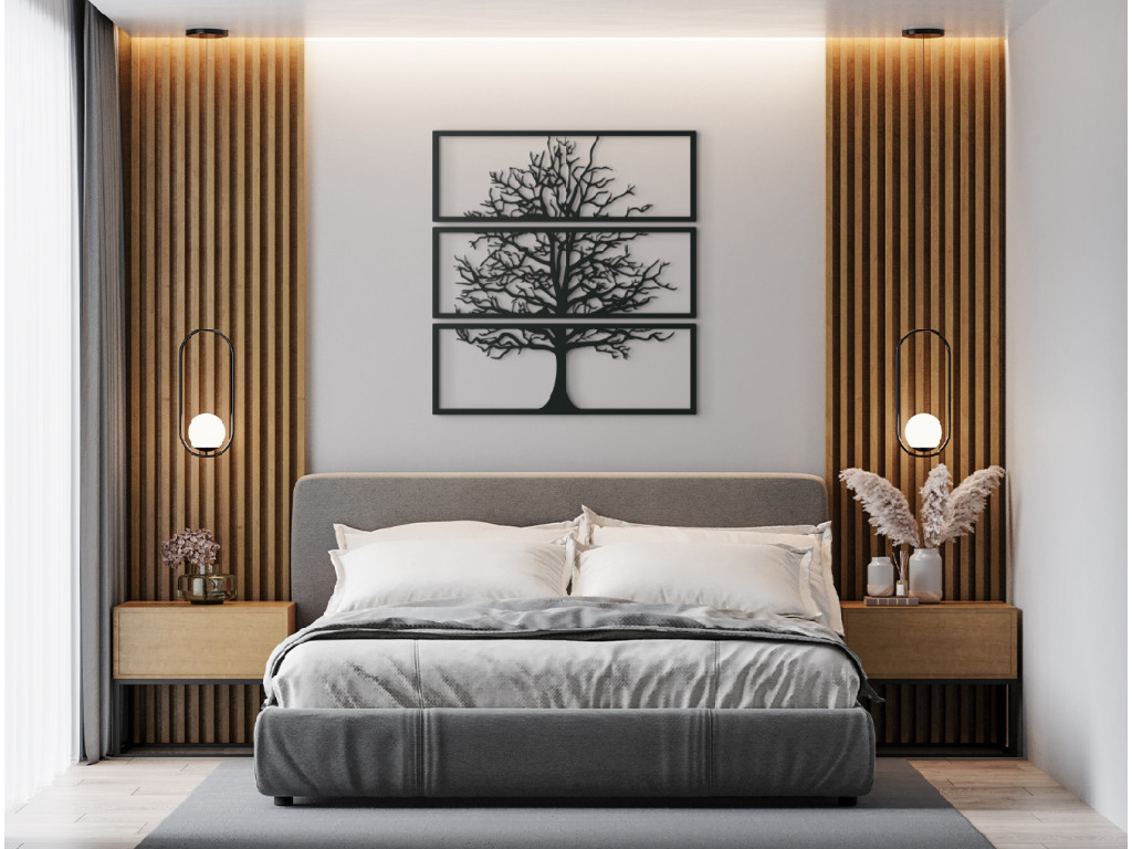 Az eredeti, faragott Fa képe a réten egy kivételes dekoráció. 3 részből áll, a többi képtől eltérően ennek a dekorációnak a részei vízszintesen helyezkednek egymásra. A középső rész a felső és alsó résszel együtt minden helyiségben remek dizájnelemként szolgál majd.