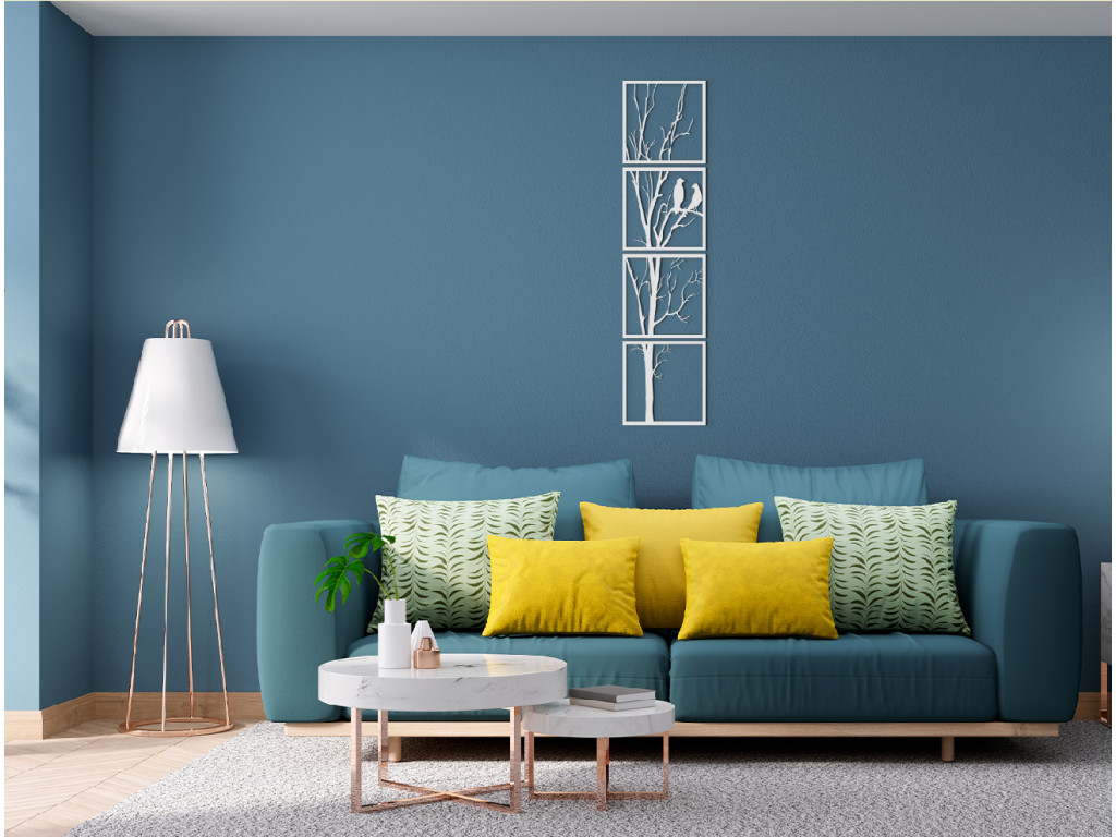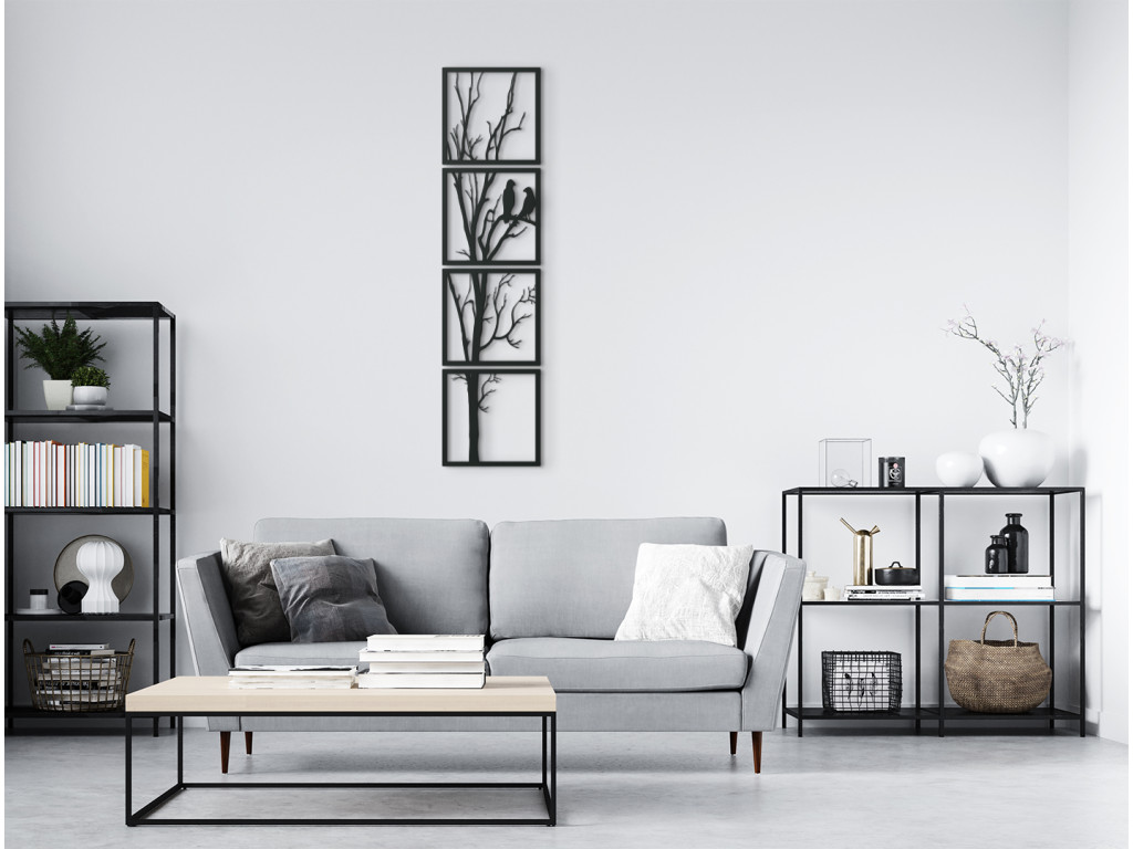 Varázsolja szebbé a belső teret egy eredeti faképpel. Az ágon ülő madarak egy kis harmóniát hoznak magukkal. A kép 4 részből áll, melyek egymás alá vannak rendezve a falon. A dekoráció alkalmas étkezőbe, konyhába, előszobába és nappaliba.