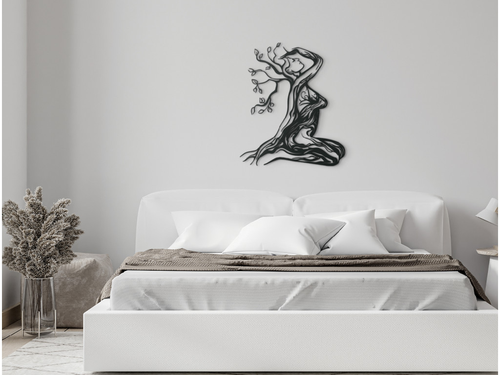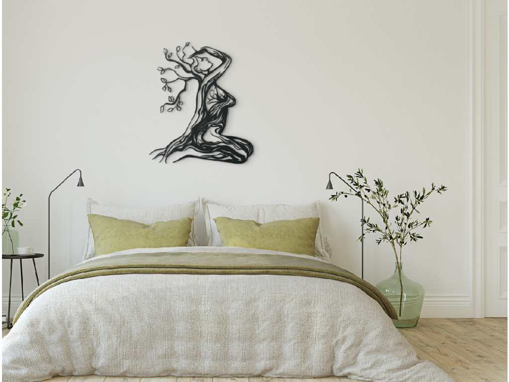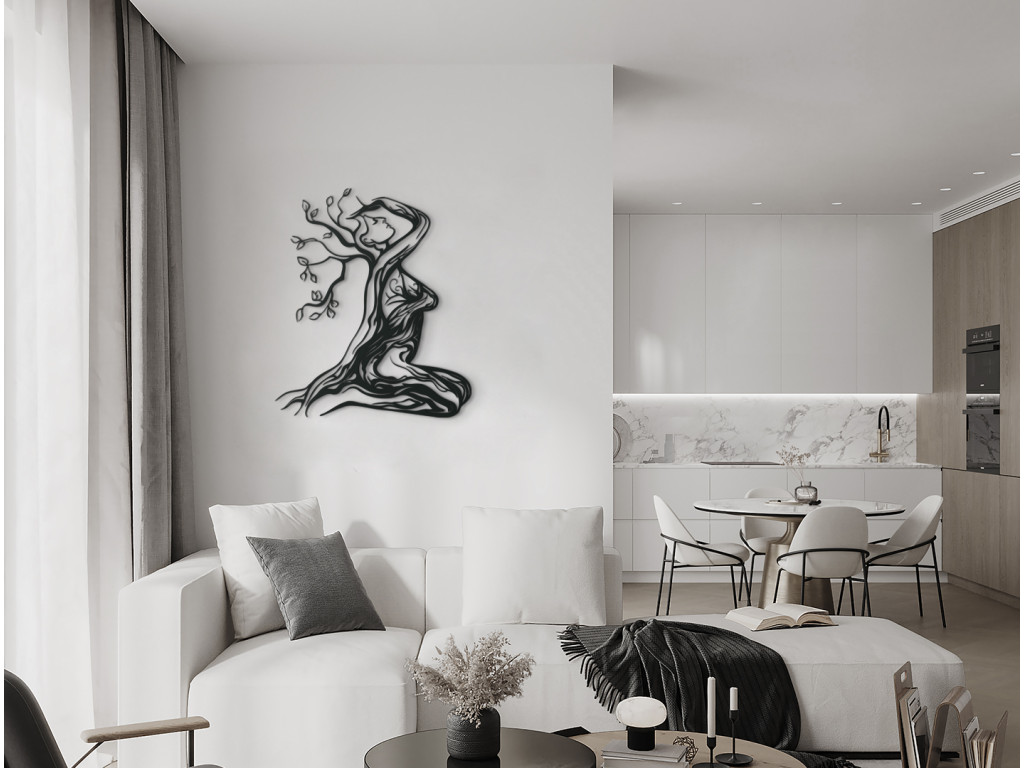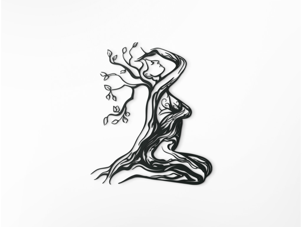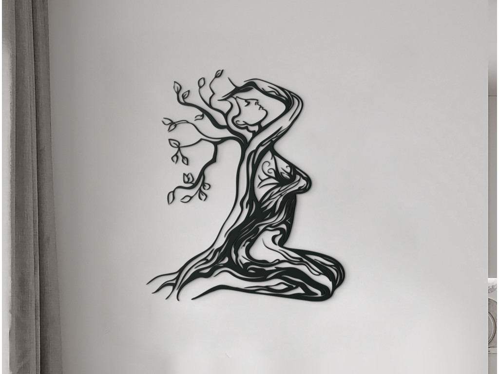 Az Anyatermészet modern matrica minden enteriőrbe illeszkedik. A festményen ábrázolt nő ül és a hegyet nézi. Minden jellemzője és körvonala faágakból áll. A dekoráció kis és nagy terekbe is alkalmas.