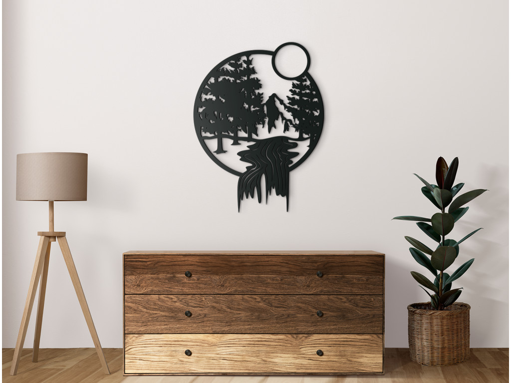Az Erdei patak fakép eleganciát és egyediséget kölcsönöz a belső térnek. Az erdő között folyó folyó békés érzést kelt. A kép háttere egy magas hegy. Kiváló minőségű, 3 mm vastag HDF lapból készült. Válasszon több dekor és képméret közül.