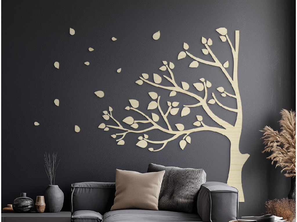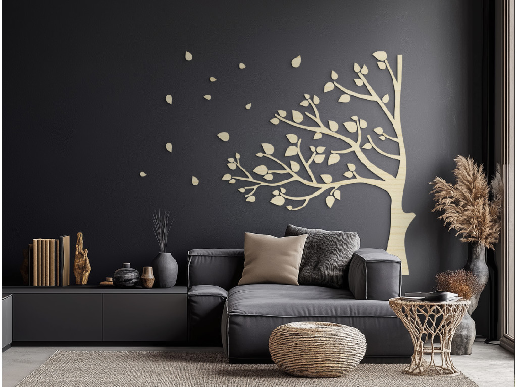 A Szél a lombkoronákban fali dekoráció fából készült a drevko műhelyében, a hangsúlyt a precizitásra és a művészi részletekre helyezve. A dinamikus fa motívum szabadságot, mozgást és természetes energiát kölcsönöz a térnek. Egy eredeti kiegészítő, amely a falat a természet élő képévé varázsolja.