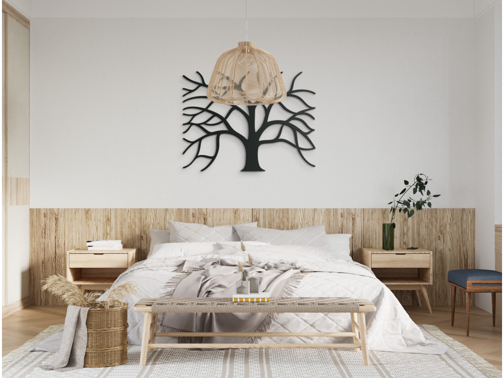 A Fa eredeti fali dekoráció érdekes megjelenést kölcsönöz az irodának, a folyosónak és az étkezőnek. Érdekes részlet a hiányzó keret, amely magát a képet helyettesíti. Gyökerei téglalapot hoznak létre, így a kép úgy néz ki, mintha egy keretben lenne. A festmény modern és klasszikus enteriőrbe egyaránt illeszkedik.