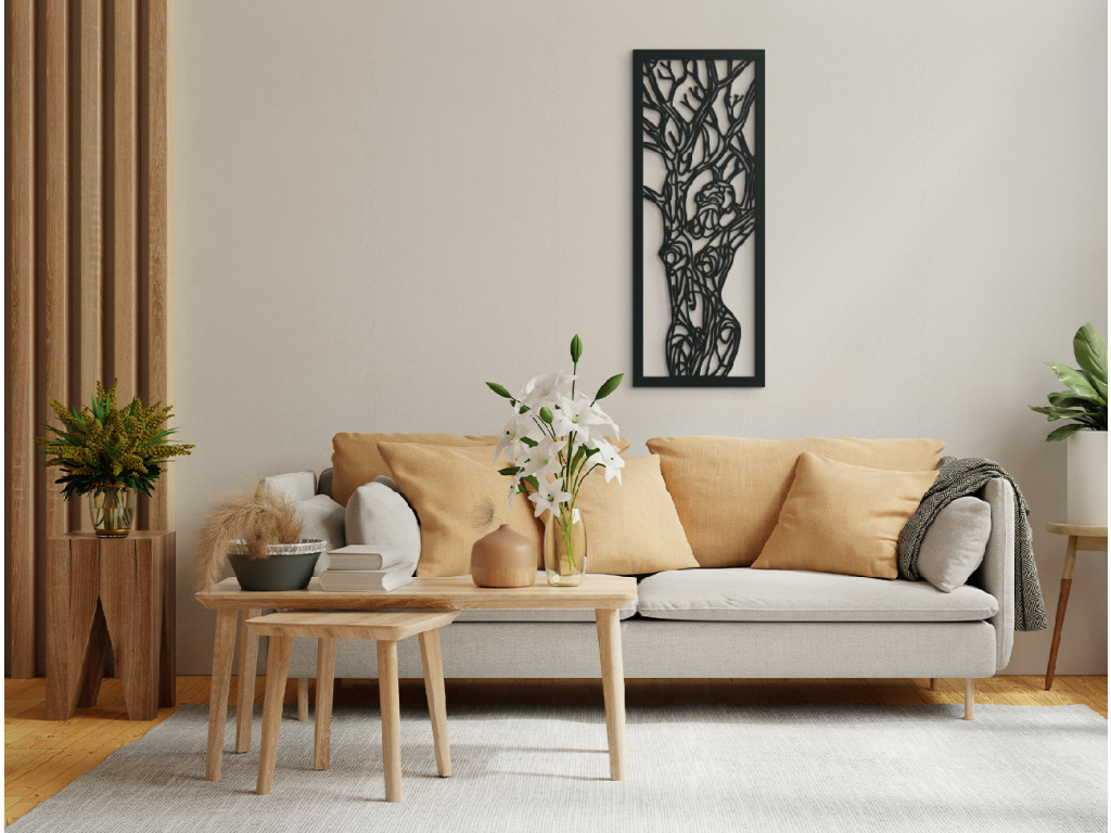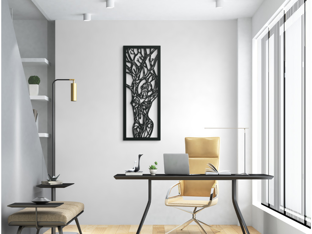 Modern, elegáns és egyedi. A Nő és fa faképről beszélünk, amely minden enteriőrbe illeszkedik. A festményen ábrázolt nő az űrbe néz, testében faágak nőnek. A dekoráció kis és nagy terekbe is alkalmas.
