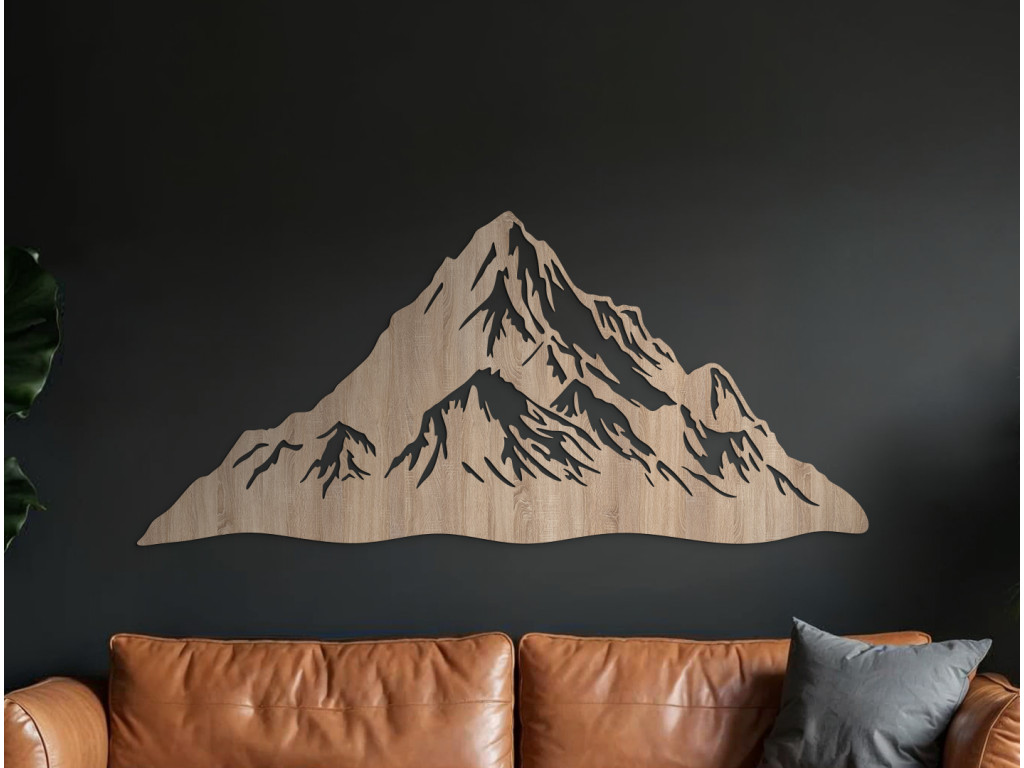 Az atipikus Hegy című kép egyedi formájával és a hegymotívum eredeti kidolgozásával tűnik ki. A precízen faragott vonalak és a dinamikus kompozíció modern és időtlen megjelenést kölcsönöz a műnek. Ez a festmény a belső tér jellegzetes elemévé válik, és a természet hangulatát hozza el oda.