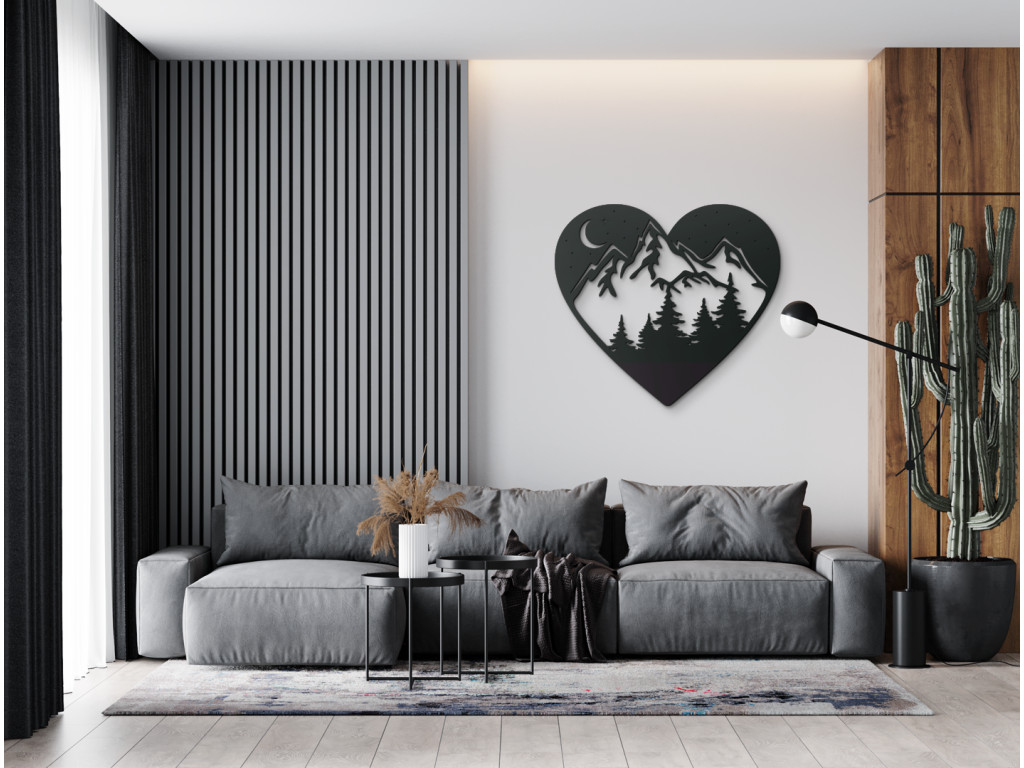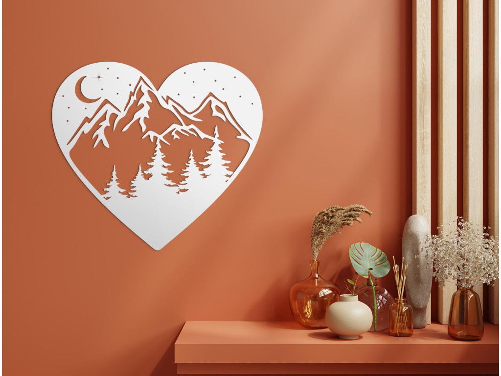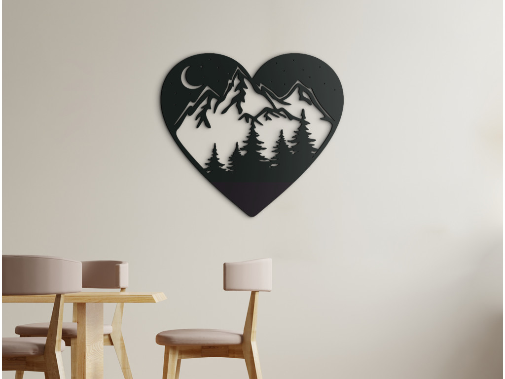 Hagyja, hogy belső tér lélegezzen egyszerű és természetes kialakítással. A szív fából készült képe minden szobában felkelti a figyelmet. Egy gyönyörű romantikus jelenetet lát a hegyekben, egy mély erdőben. A hegyek felett csillagok és hold látható, a kép szív formája finomságot és egyediséget ad. A kép a hálószobában az ágy fölé is alkalmas.