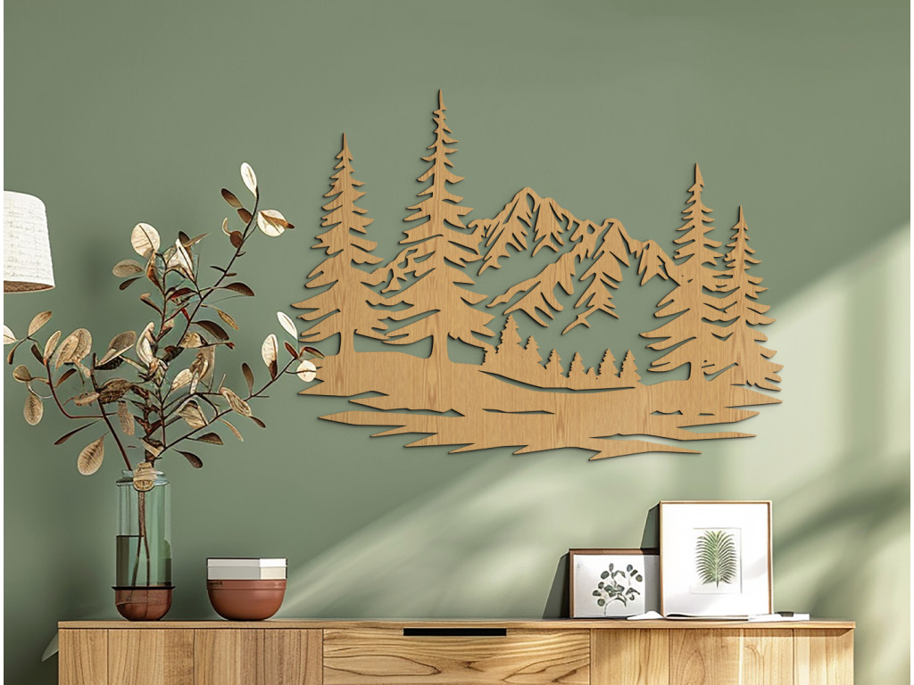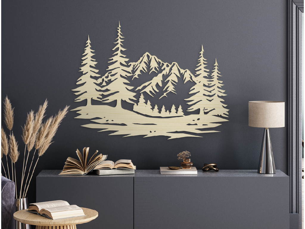 A Hegy a rét felett című fakép a fenséges hegy és az alatta elterülő hatalmas rét békés kontrasztját ragadja meg. A precízen faragott részletek realisztikus és harmonikus megjelenést kölcsönöznek a kompozíciónak. Ez a festmény a szabadság és a természettel való kapcsolat érzését viszi otthonába.