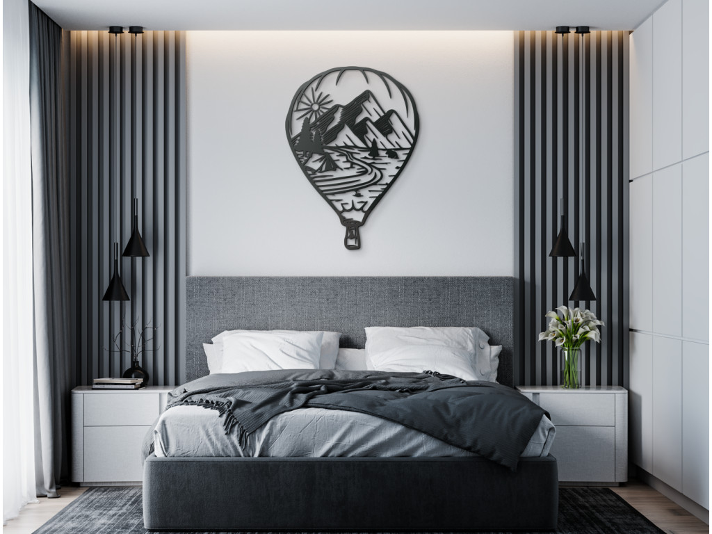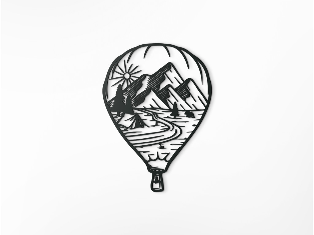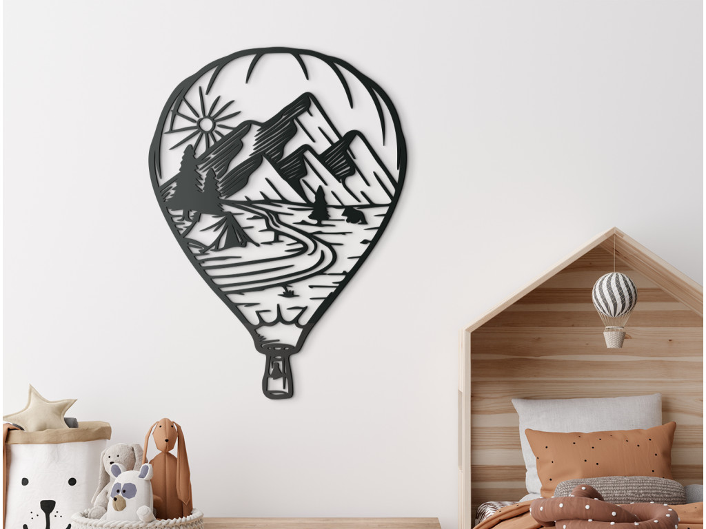 Díszítse szobáját ízlése szerint. A Repülő léggömb a természettel fa dekoráció a gyerekek és felnőttek figyelmét egyaránt felkelti. Az első dolog, amin megakad a szemünk, egy repülő léggömb alakja, amely mesebeli kilátást hordoz. A napfelkeltét ábrázolja a hegyek csúcsai felett. A hegyek alatt erdő van, és benne egy sátor a folyó mellett. A Repülő léggömb a természettel fakép alkalmas lesz nappaliba és gyerekszobába egyaránt.