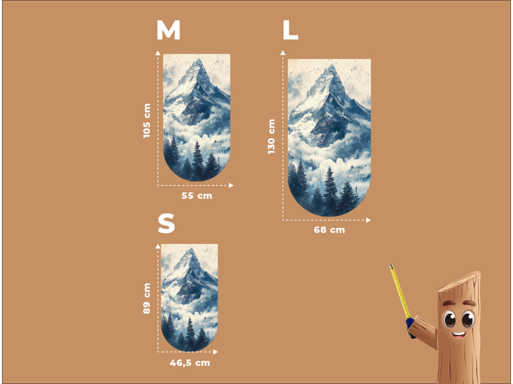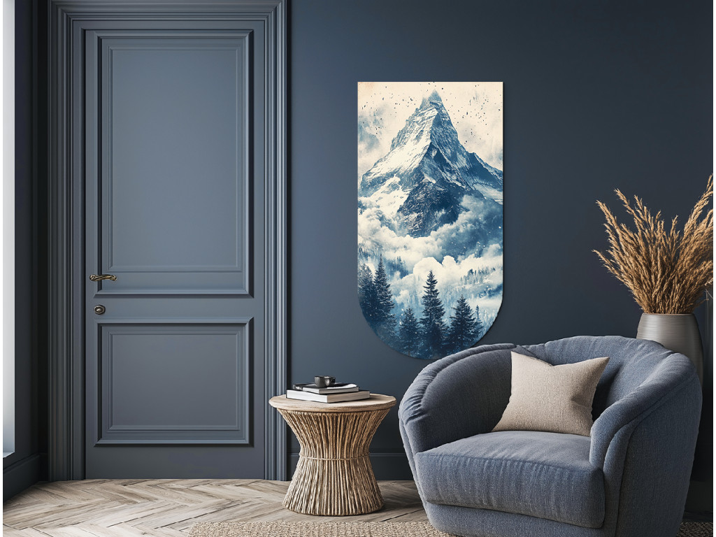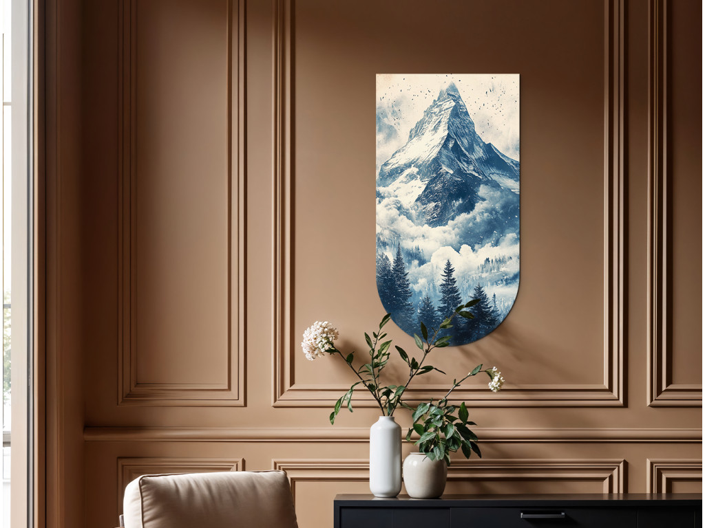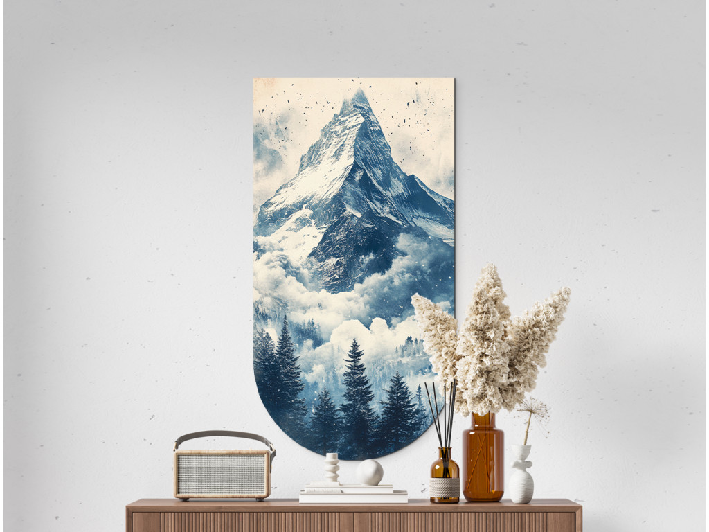 A Béke a Matterhorn alatt kép egy függőleges illusztráció, amelynek finoman lekerekített alsó széle az ikonikus, hófödte Matterhorn csúcsot ábrázolja, felhőkbe burkolózva és sűrű fenyveserdővel körülvéve. A mű harmonikusan és természetesen hat, kompakt formája pedig dekoratív elemként – például mágnesként, könyvjelzőként vagy szuvenírként – is ideálissá teszi. A jelenet békét és tiszteletet sugároz a hegyek fensége felé.