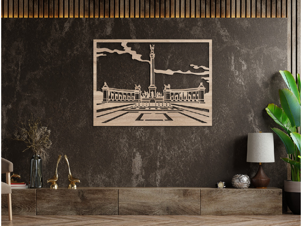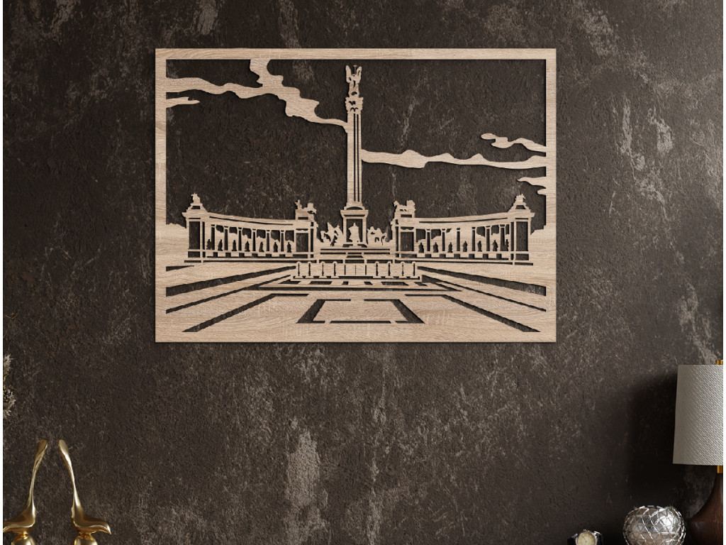 Budapest leghíresebb terét az otthonába? Miért ne? A fa dekorációnak köszönhetően nap mint nap megcsodálhatja a csodálatos központi részt. A műhelyünkben tervezett és készült Hősök tere kép a történelem és a modern design szerelmeseinek szívét fogja megörvendeztetni. Válasszon színt, méretet és szépítse otthonát egyedi dekorációval.