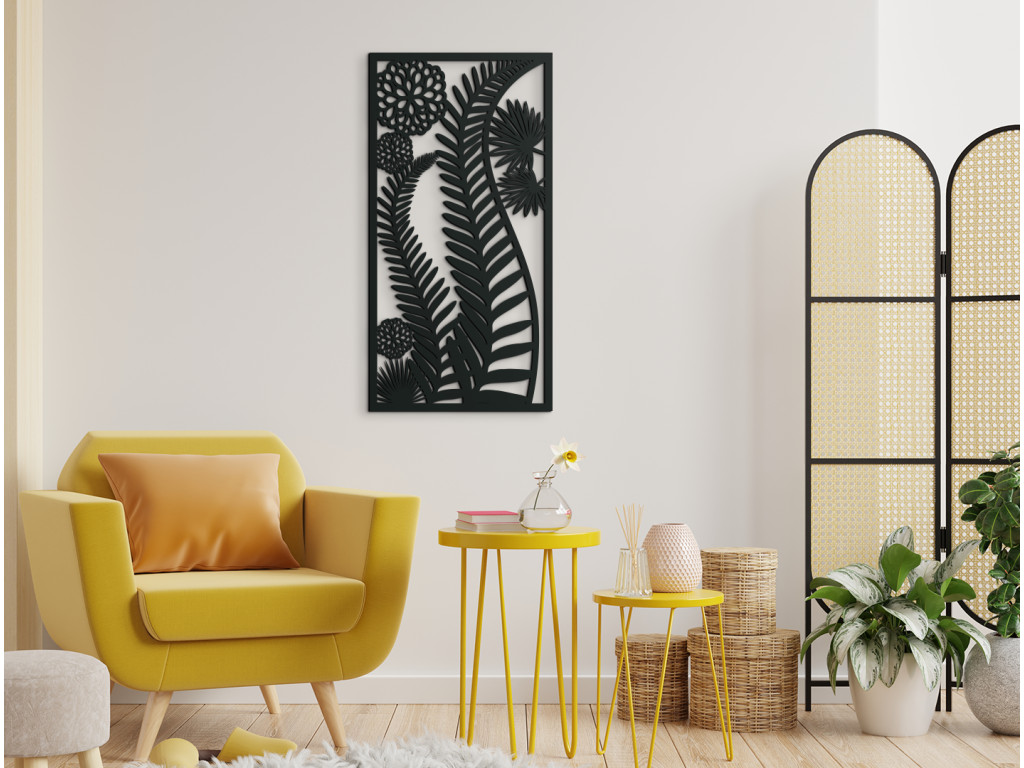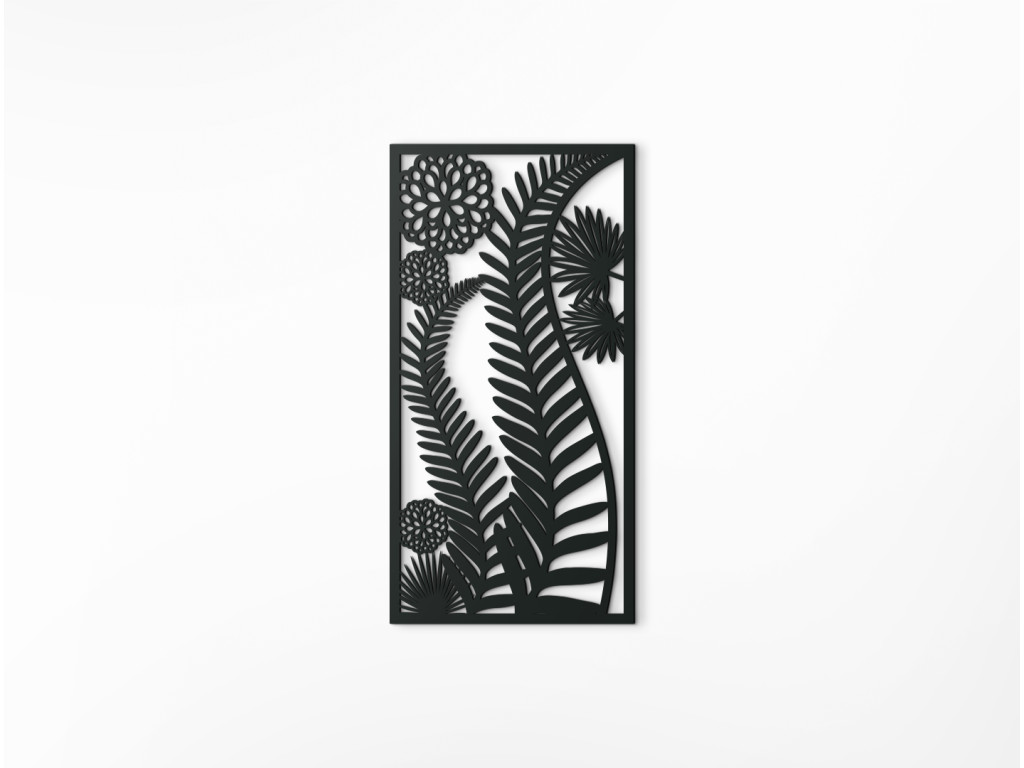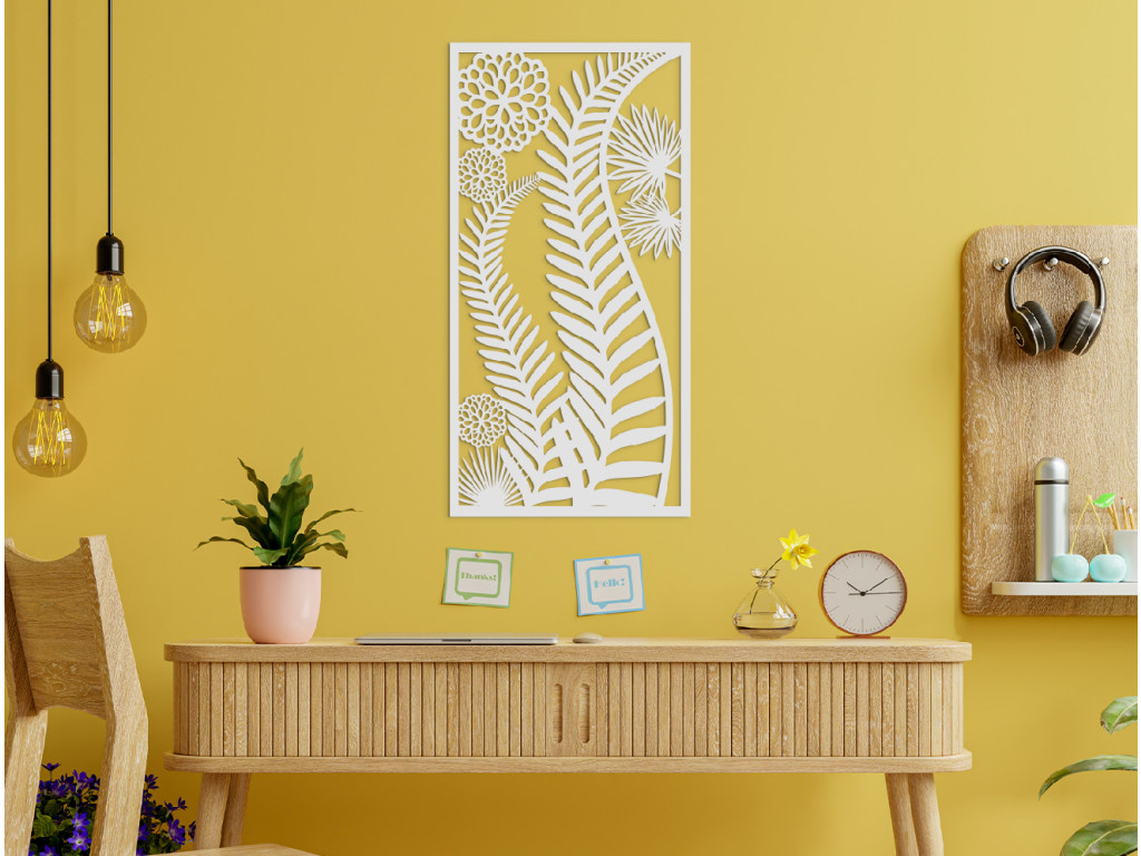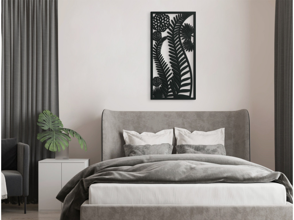 Ez a dizájndarab még egy közönséges falat is eredeti darabbá varázsol. A Páfrányok fakép egy nem hagyományos kiegészítő, amely bármilyen enteriőrben ragyogni fog. A díszítés a teljes magasságban elnyúló páfrányokat és egyéb virágokat ábrázol. Több színárnyalat közül választhat.