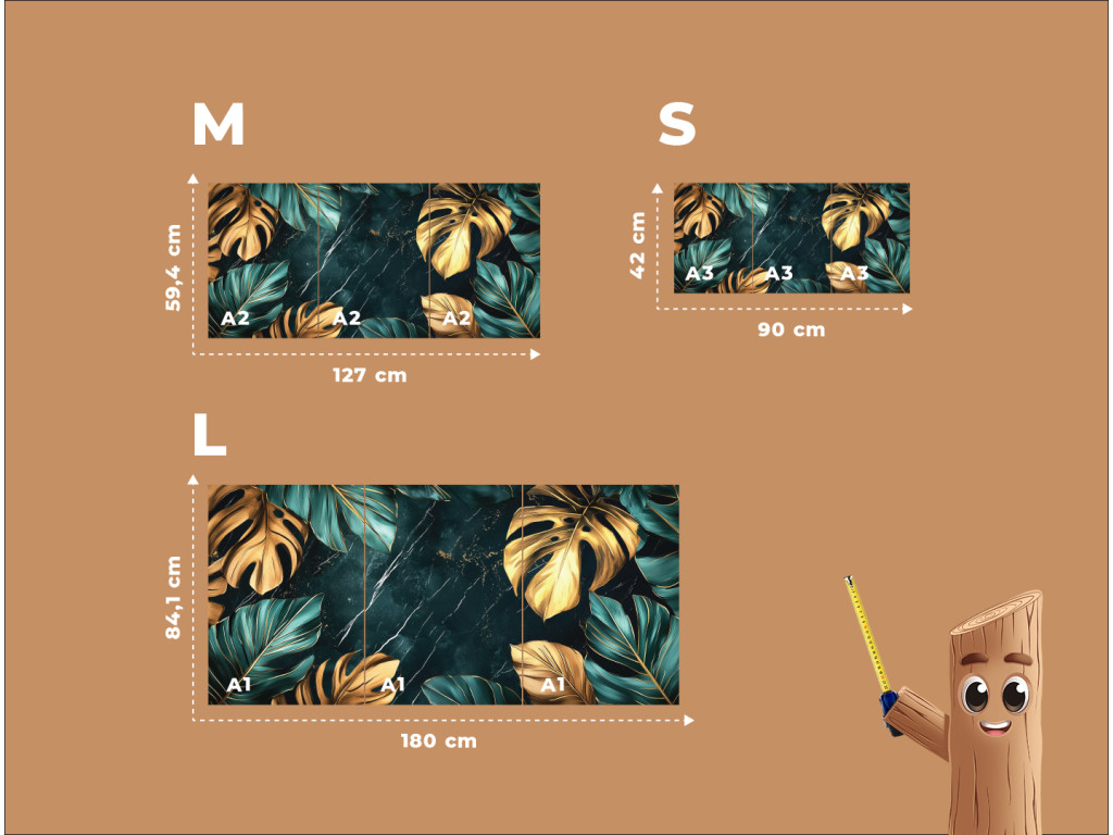 A termék háromrészes szettként érkezik A1 / A2 / A3 (választható) formátumban.