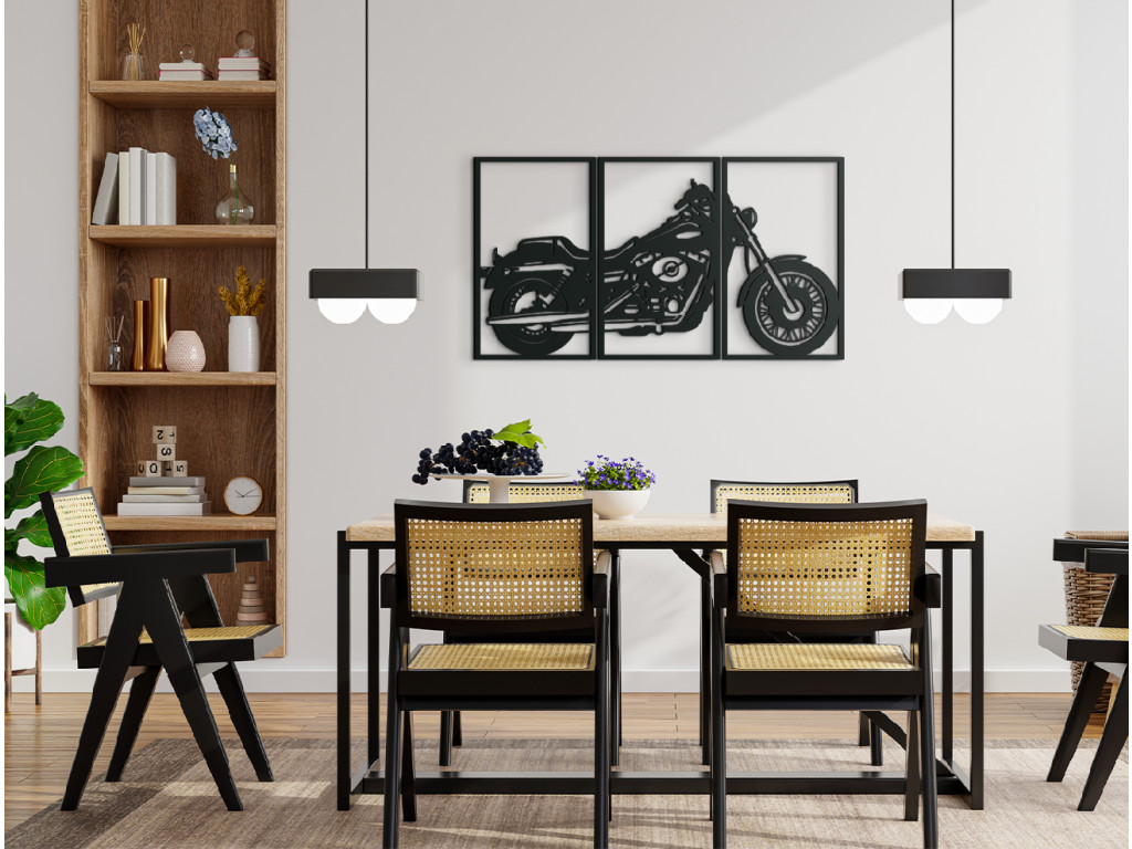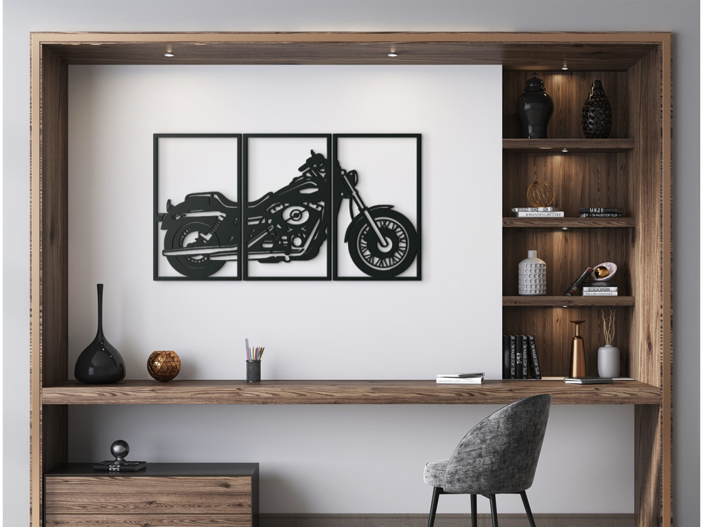 A motorok és a chopperek szerelmese? Akkor önnél nem hiányozhat ez a stílusos, több részből álló kép. Eredeti és egyedi hatást kelt majd a falon. A jármű szerelmeseinek pedig kiváló ajándék lehet.