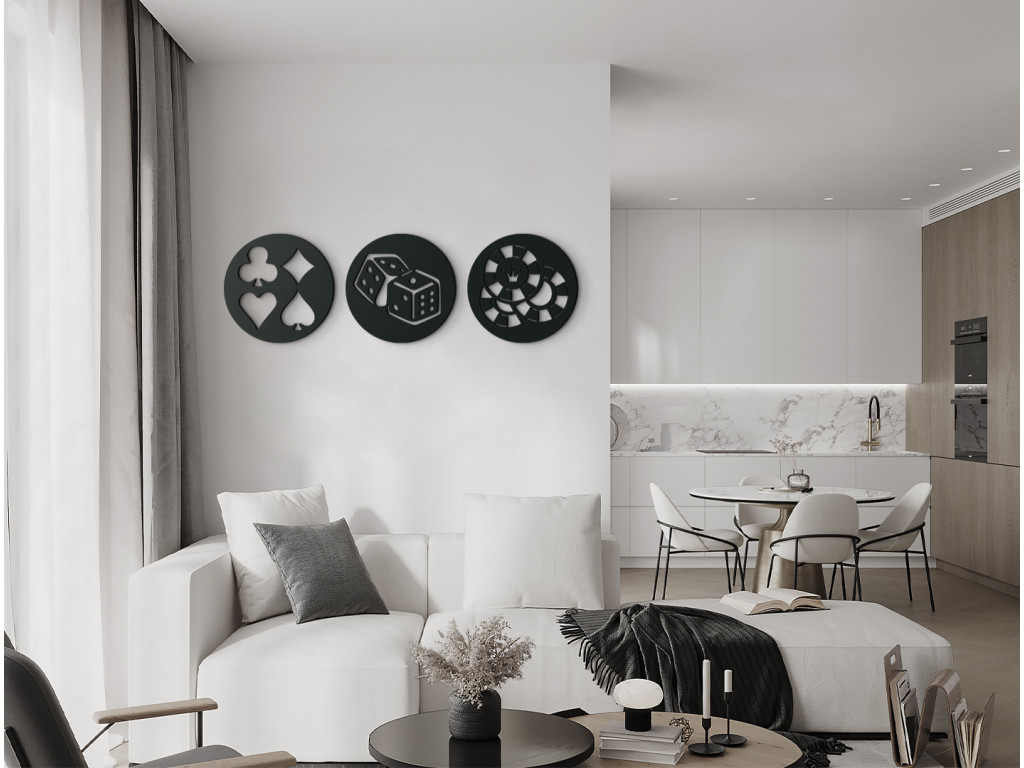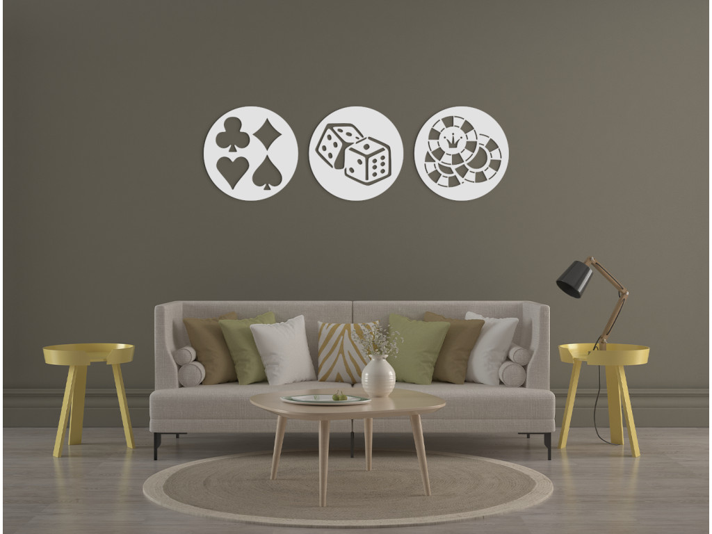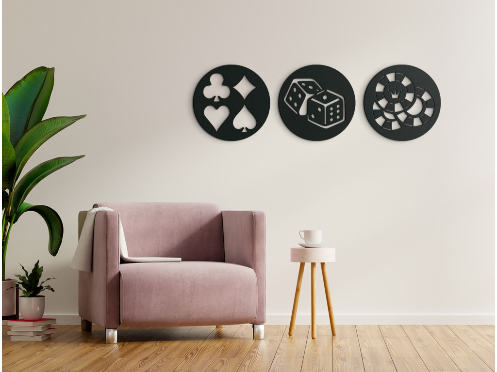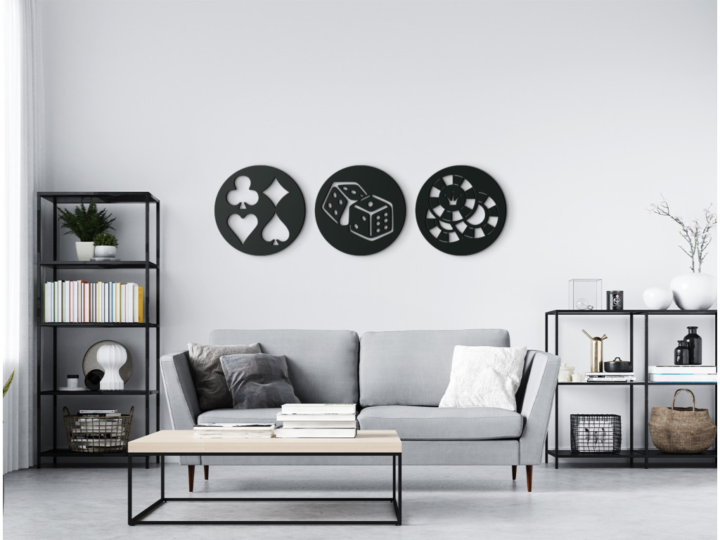 Van valami különlegességünk a népszerű Póker játék szerelmesei számára. A Póker szimbólumaival ellátott többrészes kép redeti dizájnt hoz a belső térbe. Különösen alkalmas modern belső terekbe ágy, komód vagy kanapé fölé.