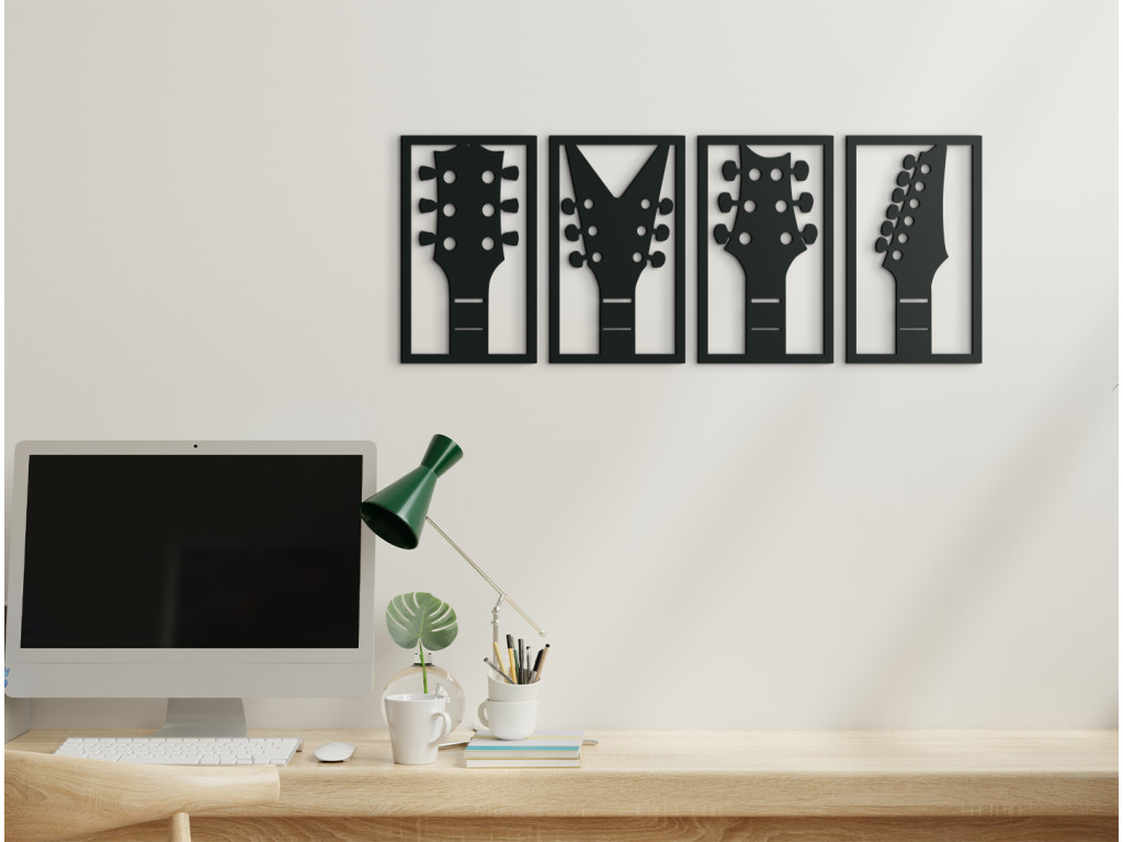 Ön egy vérbeli zenész? Akkor van egy eredeti képünk az ön számára: egy közkedvelt hangszer fejei láthatóak rajta. A gitár fa képe eredeti megjelenést kölcsönöz a belső térnek. Több színváltozat közül választhat.
