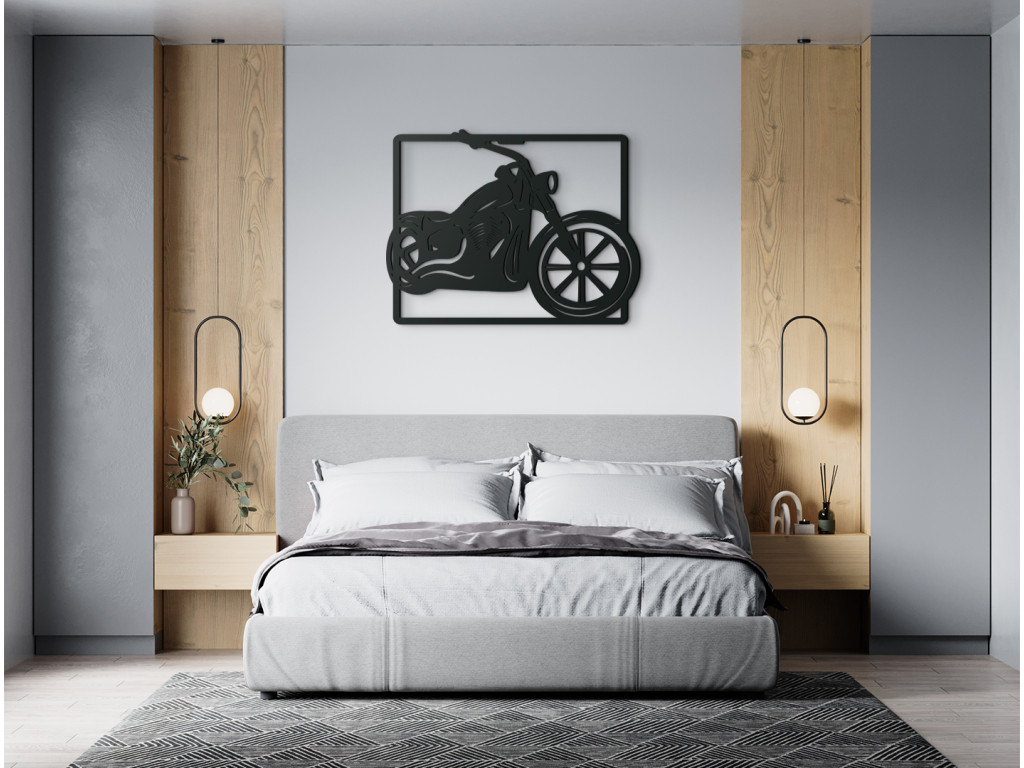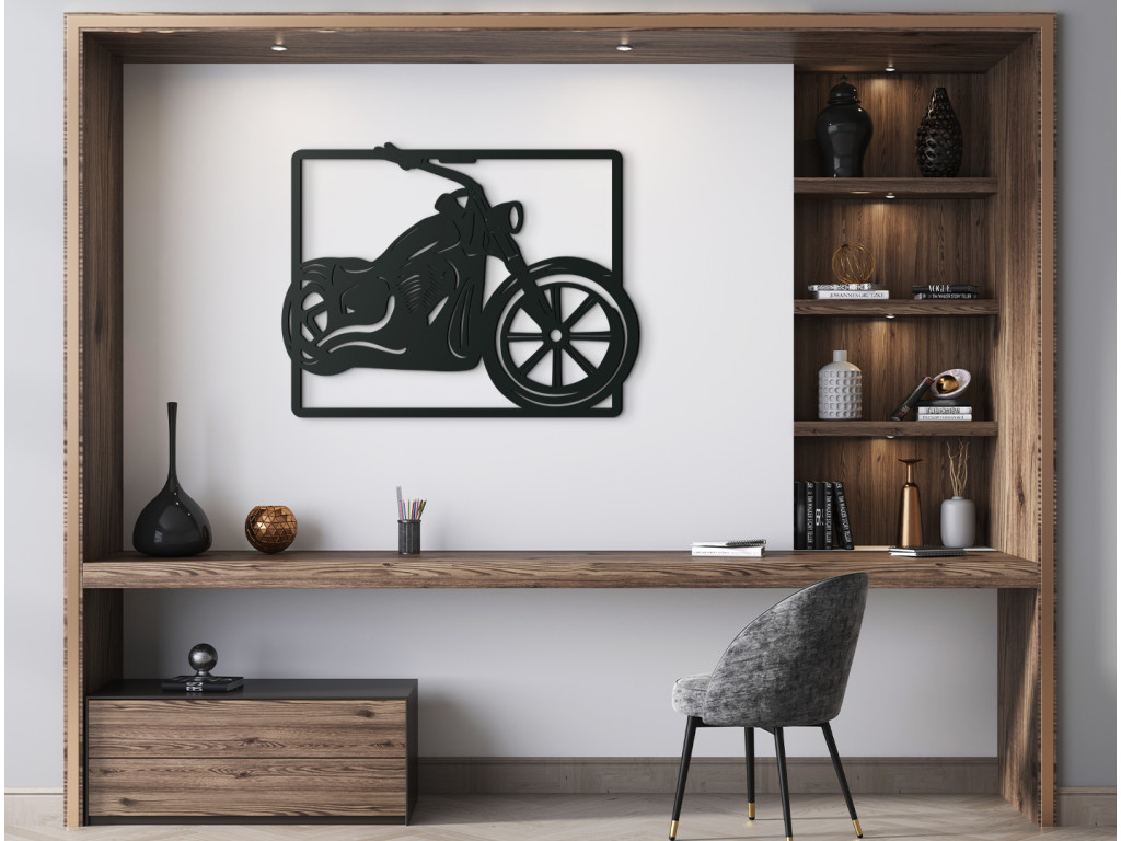 Ez a fából készült matrica egyértelműen elbűvöli a motorkerékpár-rajongókat és a jól ismert chopperek kedvelőket. A fa matrica alkalmas nappaliba, hálószobába, irodába. A dizájnos chopper eredeti megjelenést kölcsönöz a helyiségnek. Szintén tökéletes ajándékötlet a stílusos jármű szerelmeseinek.