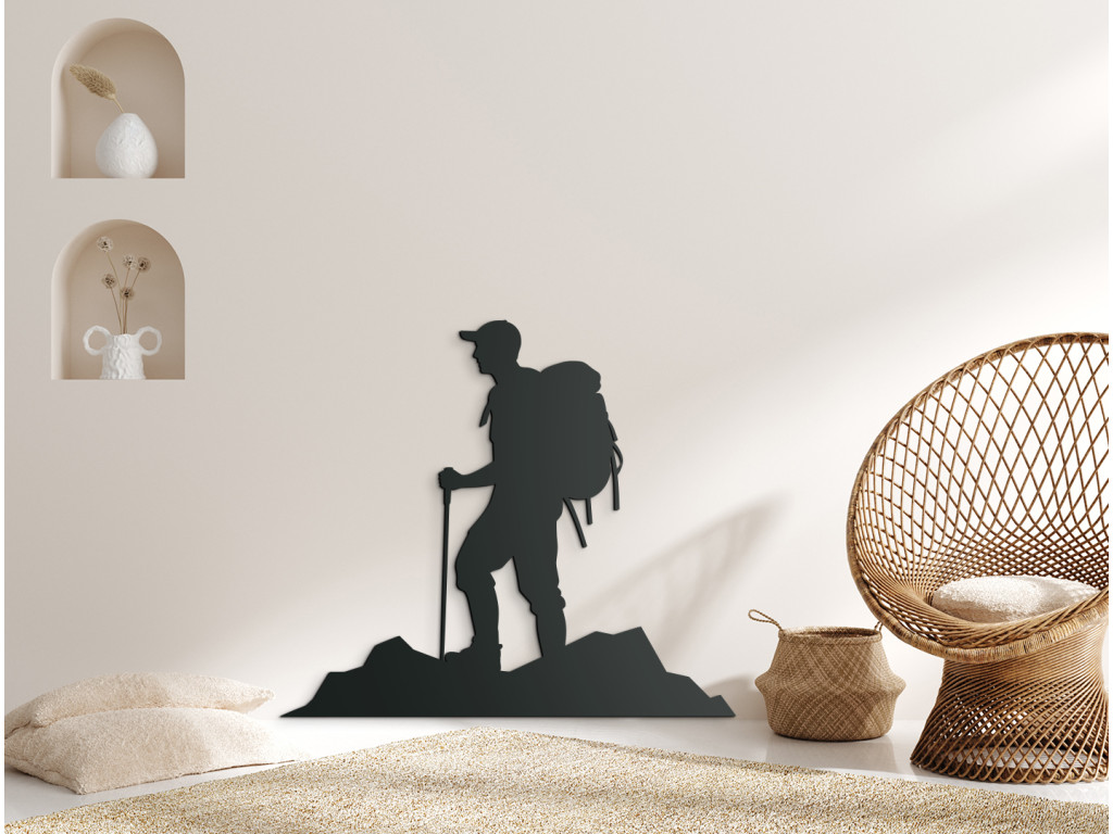 Drevený obraz znázorňujúci odvážneho muža, kráčajúceho neznámymi cestičkami na túre, čo evokuje ducha neustáleho prieskumu a dobrodružstva. Umiestnením tohto obrazu vytvárate v miestnosti atmosféru nekonečných možností a neobjavených horizontov, ktoré čakajú na to, aby ste ich objavili.