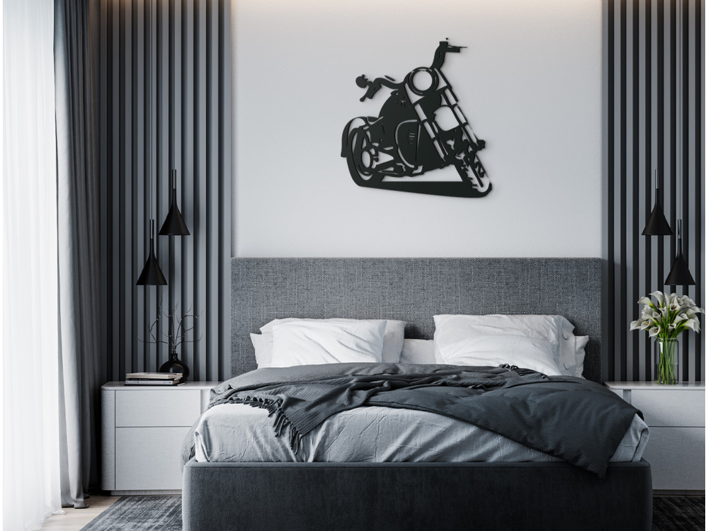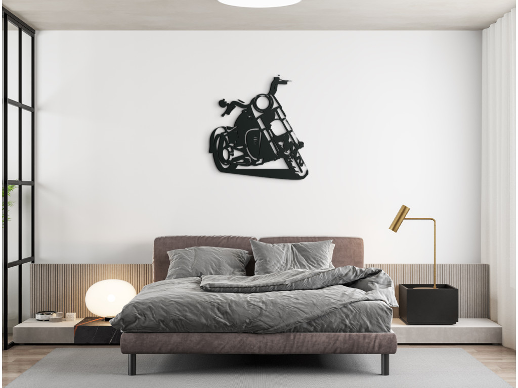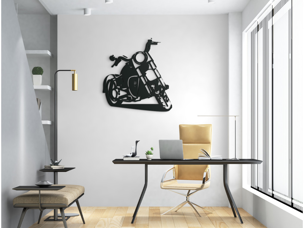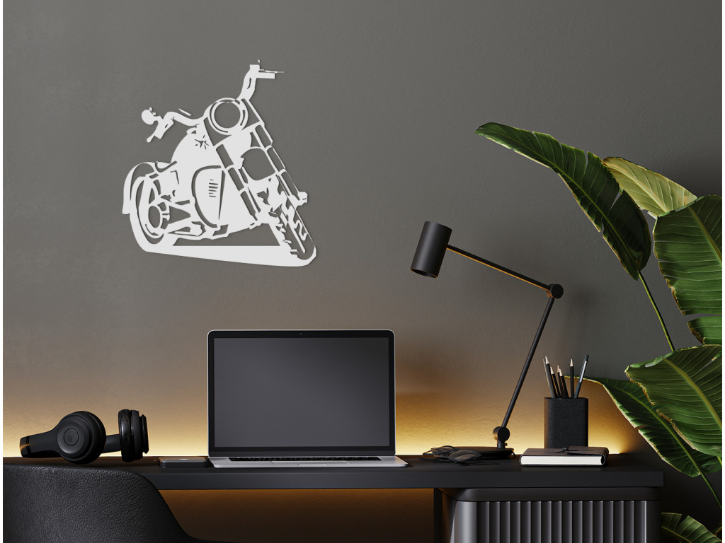 Ez a fából készült matrica egyértelműen elbűvöli a motorkerékpár-rajongókat. A fa matrica alkalmas nappaliba, hálószobába, irodába. A dizájnos chopper eredeti megjelenést kölcsönöz a helyiségnek. Szintén tökéletes ajándékötlet a stílusos jármű szerelmeseinek.