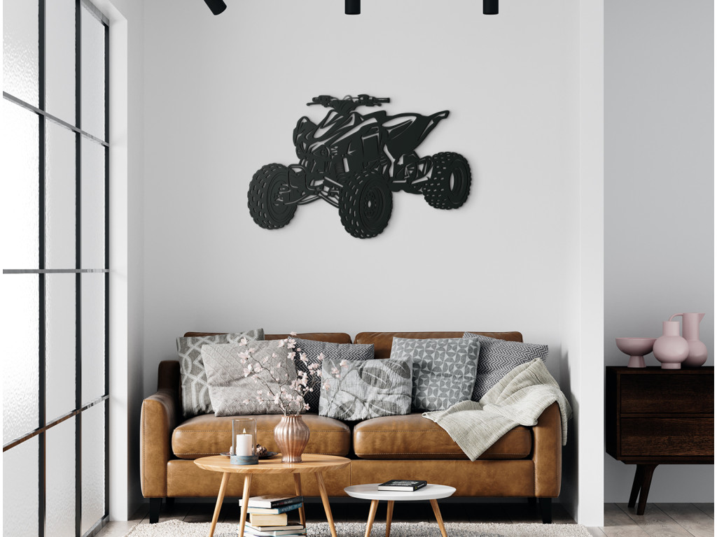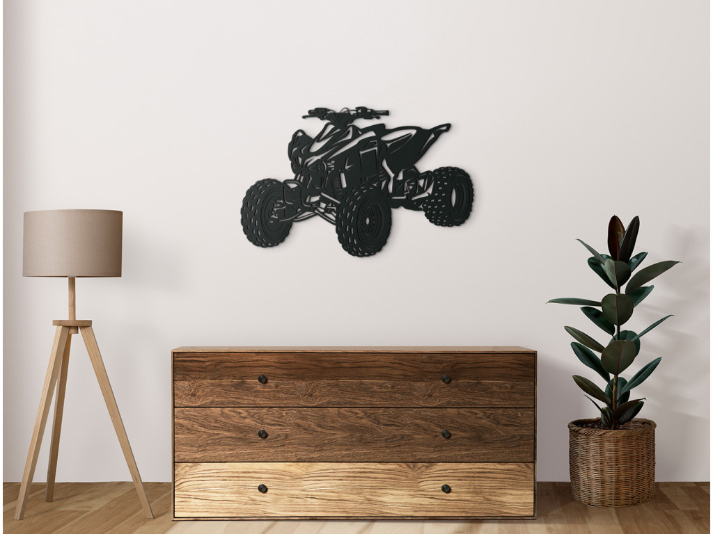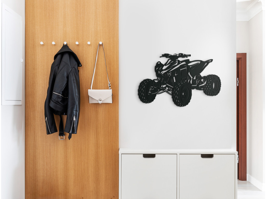A Quad motívumával díszített fa fali dekoráció örömet okoz a jármű rajongóinak. A fa matrica stílust és egyediséget kölcsönöz a belső térnek. Az így létrejövő hatás minden bizonnyal a kisebb és a nagyobb fiúknak is tetszeni fog.