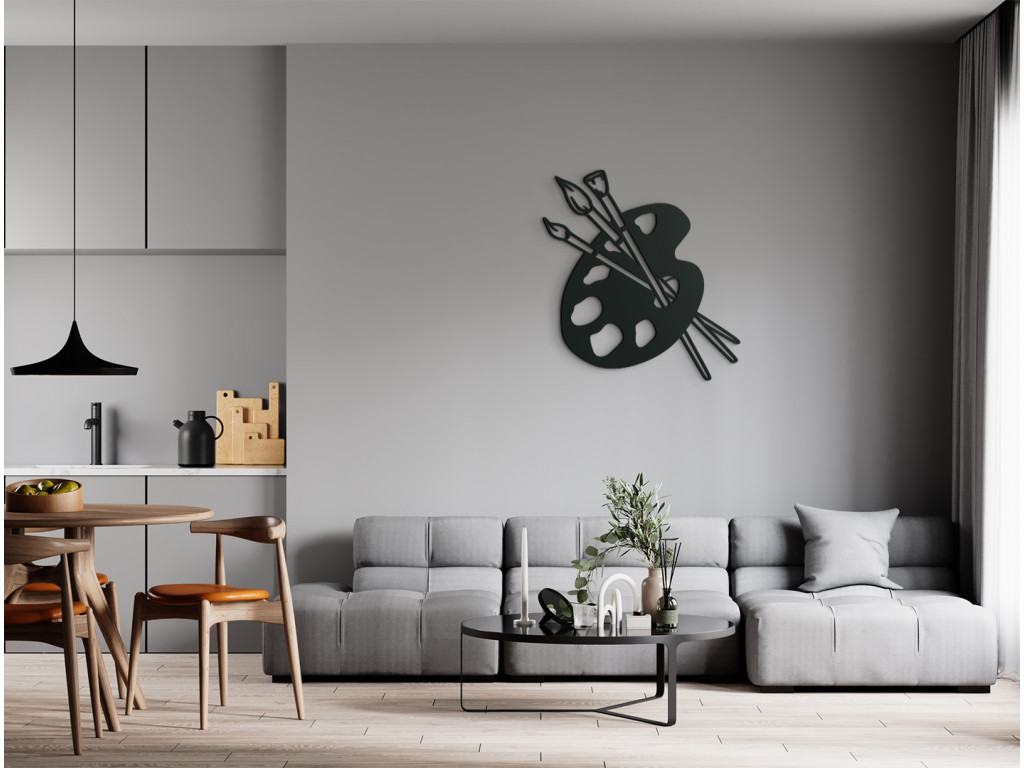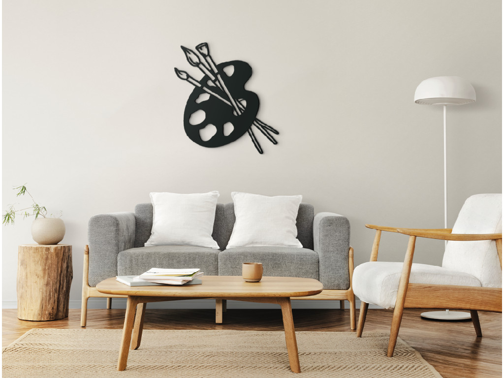 A festőpaletta és az ecsetek hozzátartoznak a művészek alapfelszereléséhez. Dekorációként ezért alkalmas lesz stúdiókban, diákterekben, de akár nappaliban vagy gyerekszobában is.
