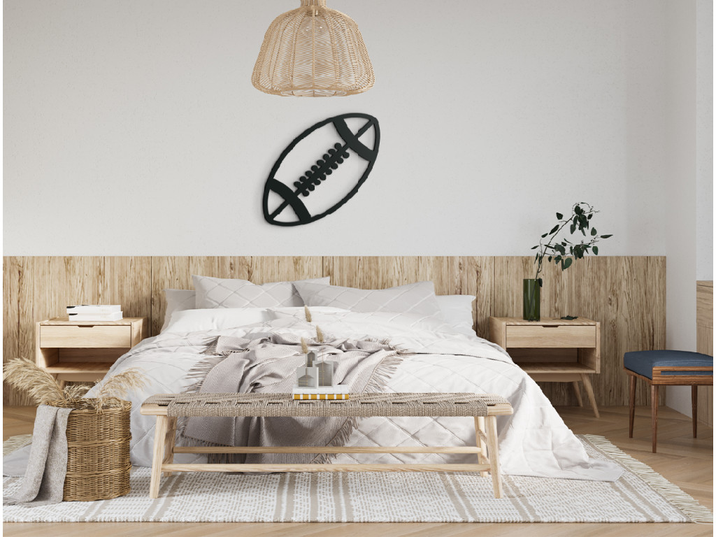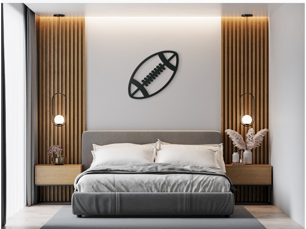 A rögbi egy jól ismert játék, amely sok rajongót szerzett szerte a világon. Ha ön is ennek a sportágnak a rajongója, nem hagyhatja ki ezt a fa matricát ennek a labdának a mintájával. Felakaszthatja a folyosóra, az előszobába, a nappaliba vagy a hálószobába. A Rögbi labda fa dekoráció az egyik kedvenc kiegészítője lesz a belső térben. Könnyen összeillesztheti más kiegészítőkkel, bútorokkal.