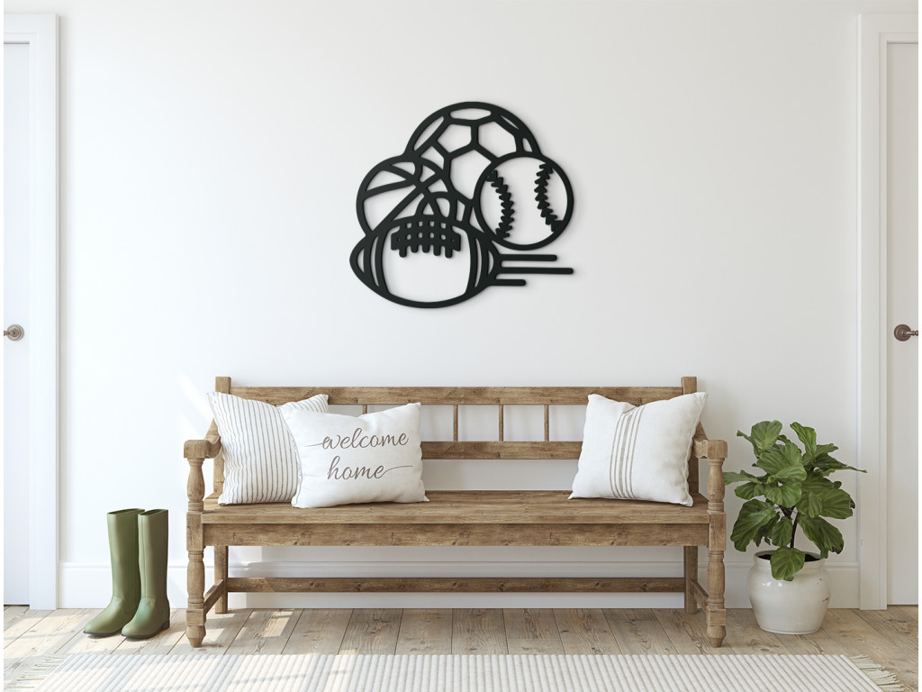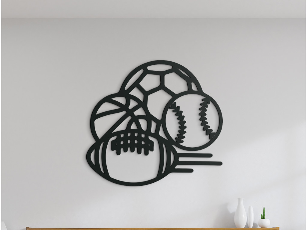 A legtöbben gyerekkorunk óta szeretjük a csapatjátékokat. Kosárlabda, futball és még sok más. Az egyes csapatsportok labdáival díszített dekoráció sportos hangulatot kölcsönöz a belső térnek. Felakaszthatja a hálószobába, a tanulószobába vagy a nappaliba.