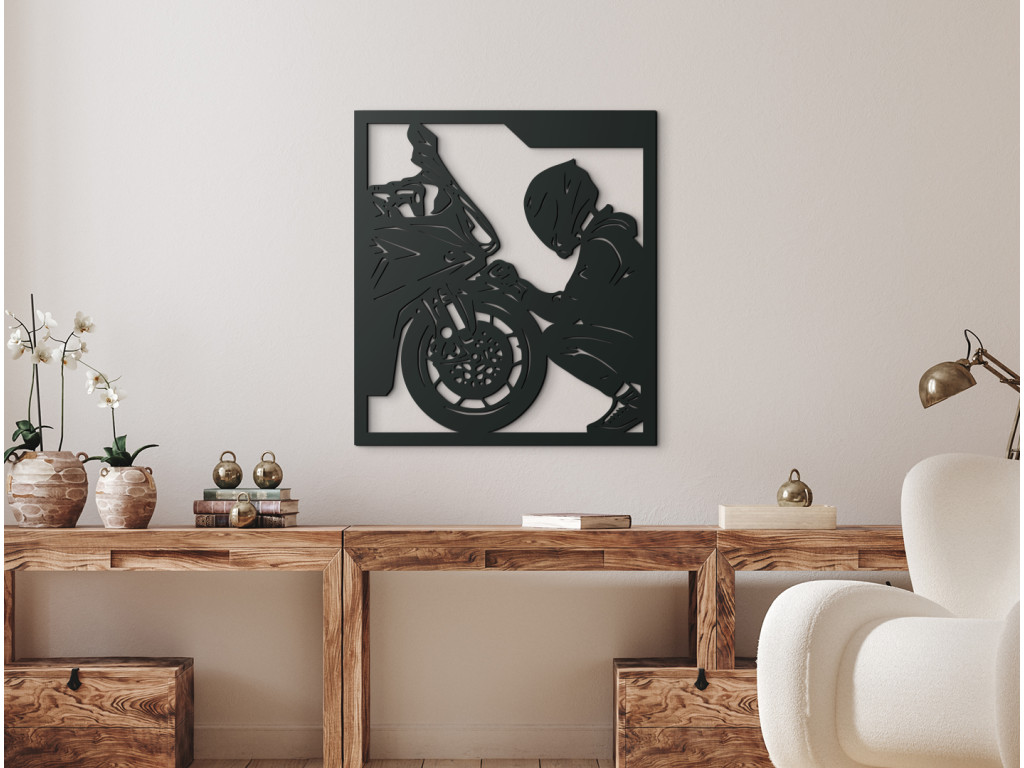 Ön lelkes motorrajongó? Akkor ne hagyja ki ezt a stílusos fa matricát egy motorosról és motorjáról. Kedveskedhet szeretteinek, akik különleges kapcsolatot ápolnak 2 kerekű szépségeikkel.