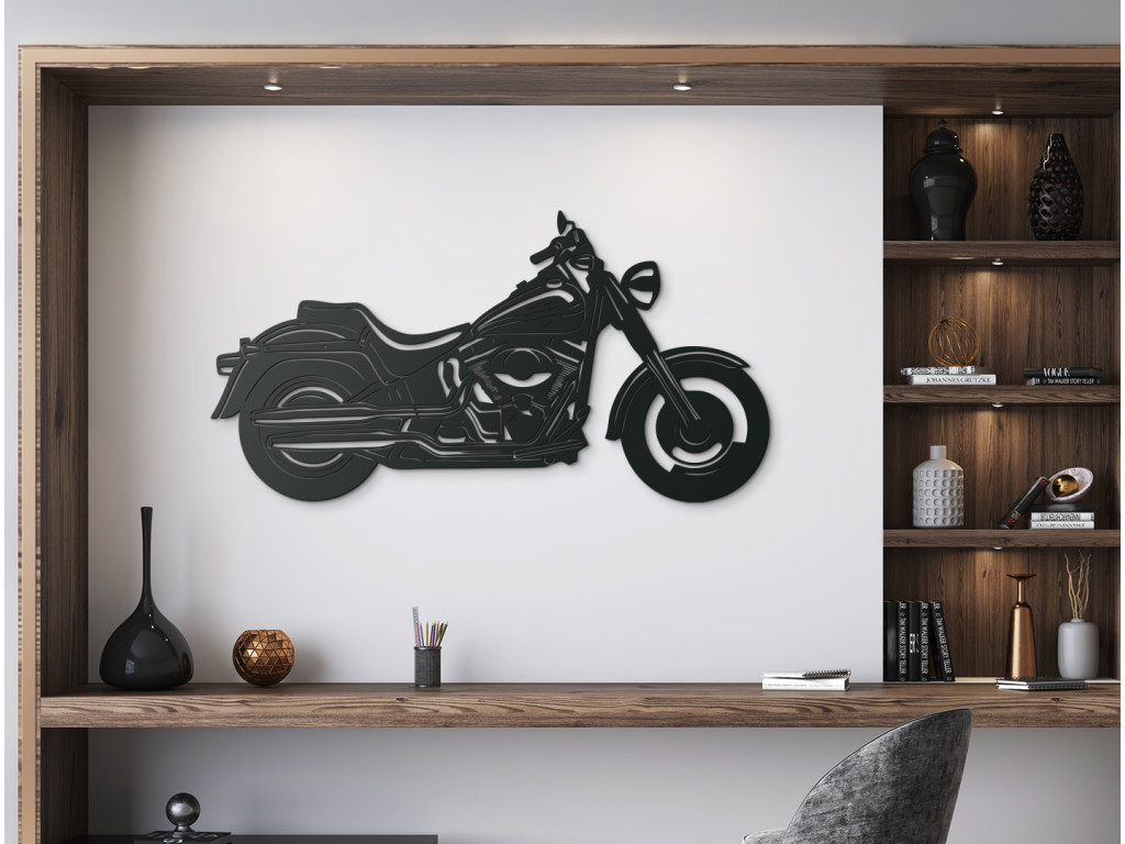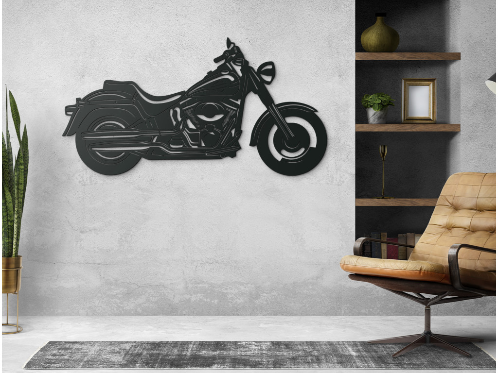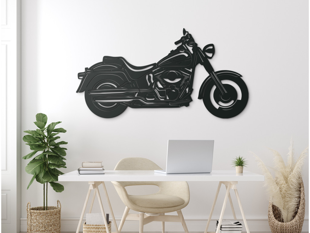 Van valamink a szenvedélyes motorkerékpár-rajongók számára - Cruiser kép. A fali matrica kiemeli ennek a kerékpárnak minden részletét, és gyönyörűen mutatja be egyedi dizájnját és történetét. Válassza ki a méretet (3 lehetőség) és a dekoráció színét (akár 8 különböző).