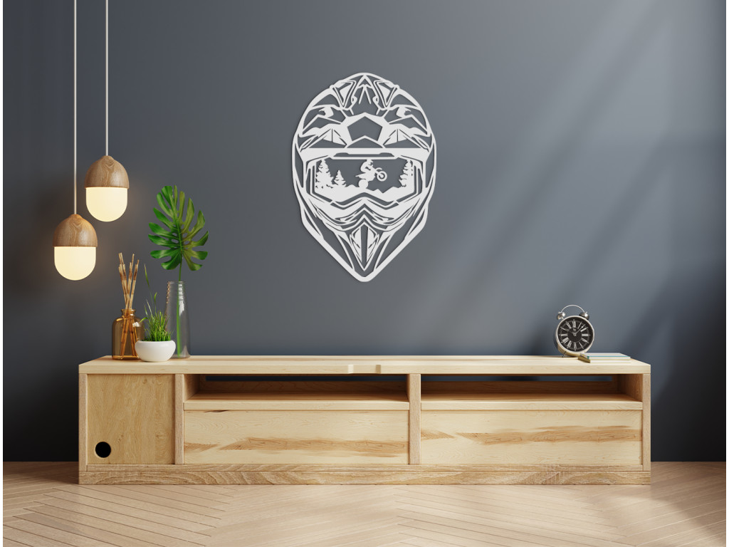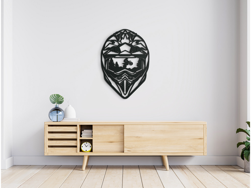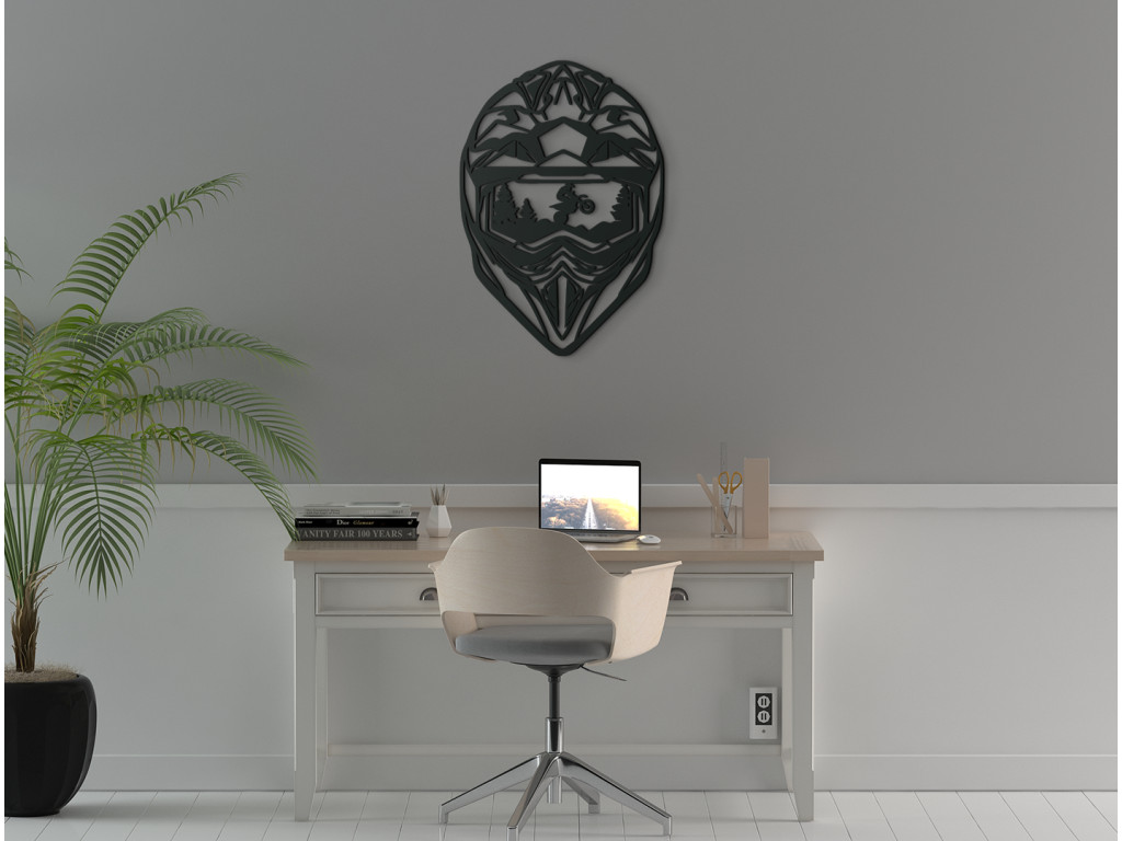 Szereti a motorokat? Akkor nem hagyhatja ki ezt a stílusos fa matricát motoros sisakkal. A sisak egy motorost ábrázol, aki hegyet mászik. Eredetinek és egyedinek fog kinézni a falon. A jármű szerelmeseinek is kiváló ajándék lesz.