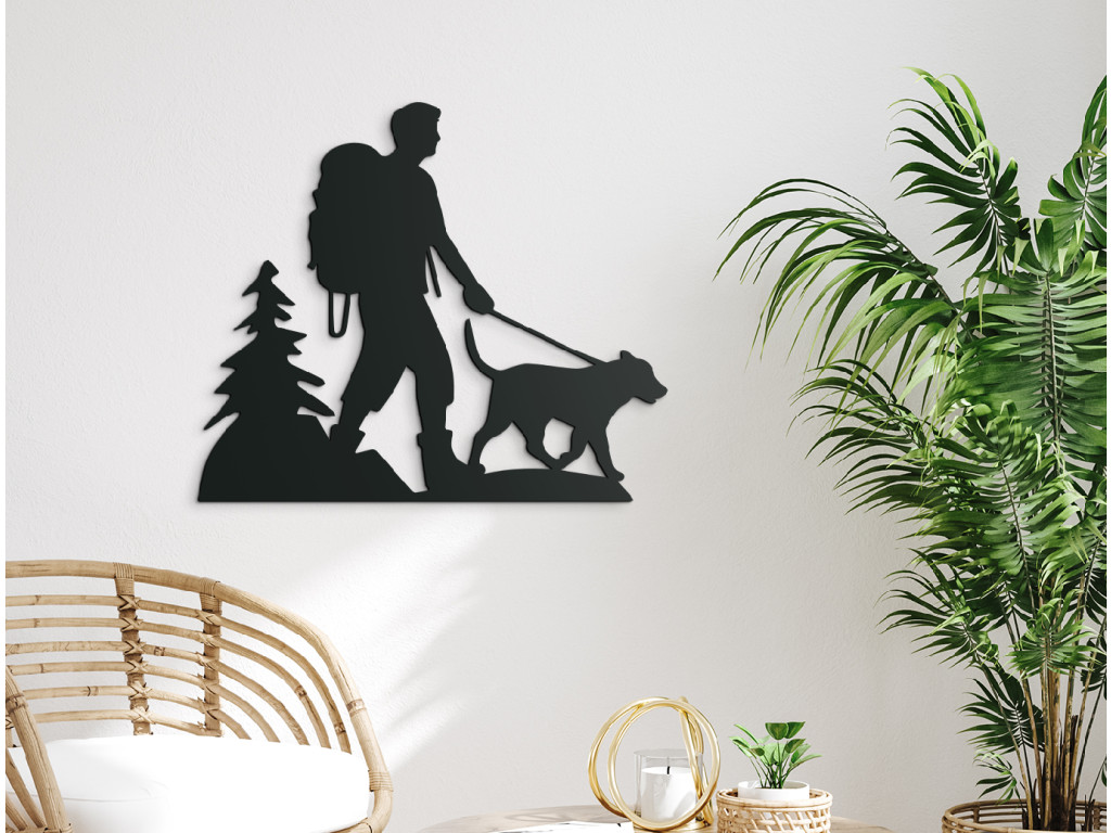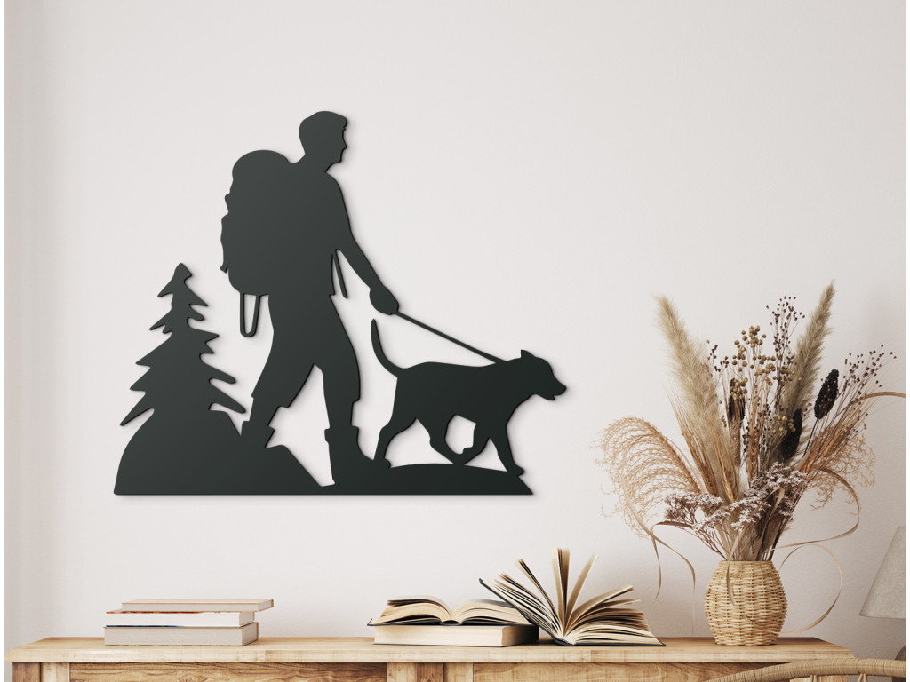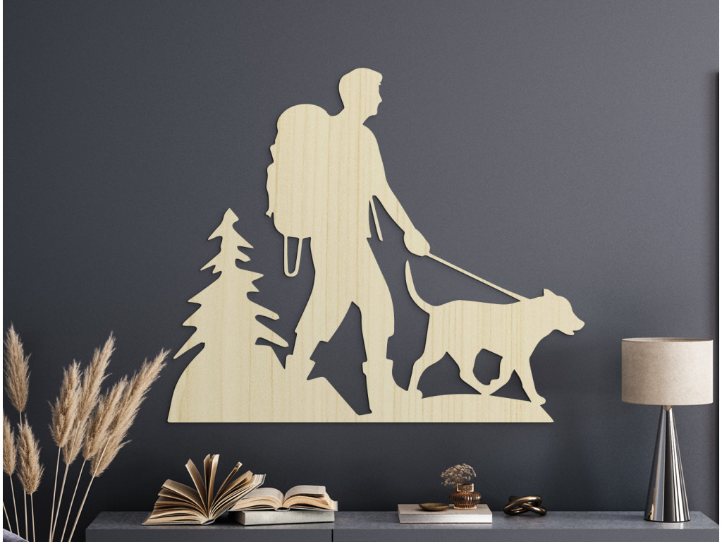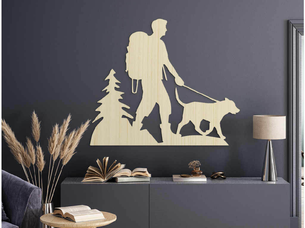 A túra és kutya motívumú fakép az ember és hűséges társa közötti mély köteléket örökíti meg. Ez a kép nemcsak egy közös túrát ábrázol, hanem a kölcsönös bizalmat is.