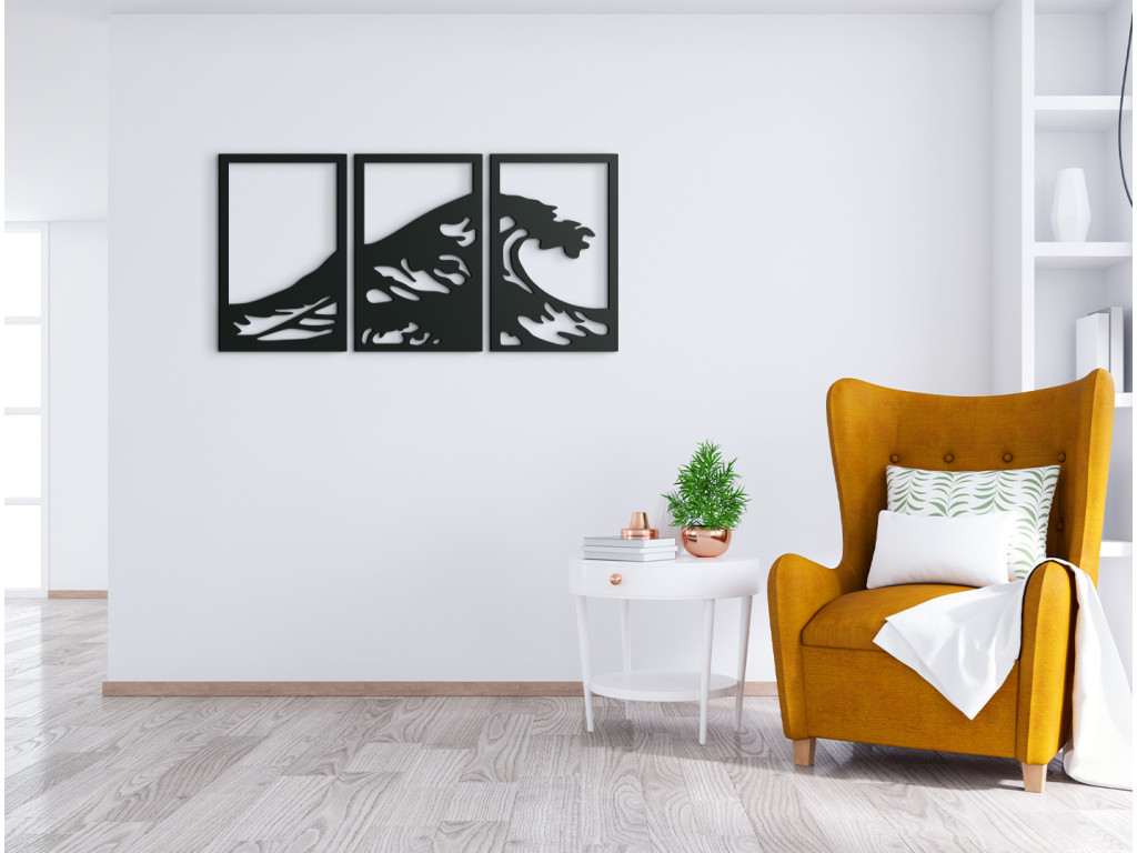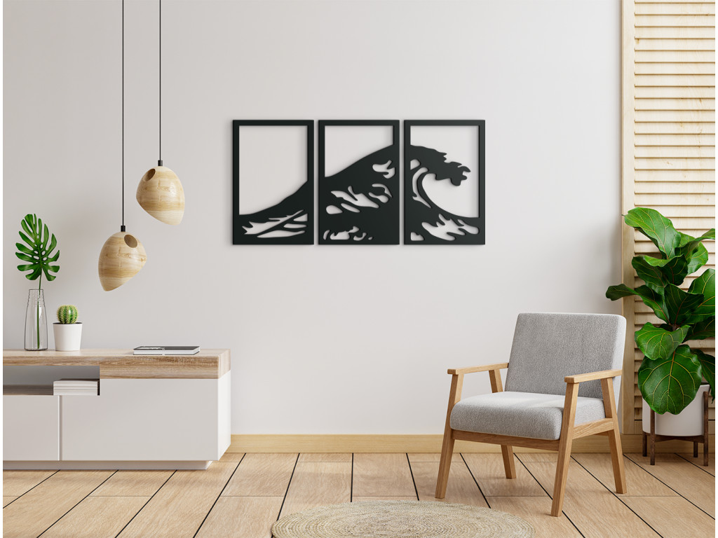 A Hullámok fakép tökéletes dekorációs elem a tenger szerelmesei számára. Egy viharos tengert ábrázol, 3 részletben. A kép a ház minden helyiségében kiemelkedően jól mutat majd, ugyanakkor ajándékként is megállja a helyét.