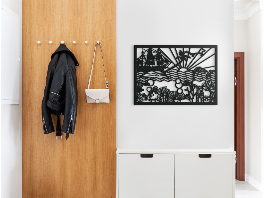A termék felszerelése egyszerű, és elvégezhető anélkül, hogy a falba kellene fúrni. A dekoráció könnyedén felhelyezhető acélszegek vagy kétoldalas habszalag segítségével (a szerelési anyagokat itt találod). Egyszerűen ragassza a szalagot a termék hátoldalára, majd helyezze fel a dekorációt az előre kijelölt helyre. Bonyolultabb elrendezések esetén sablont is mellékelünk, amely segíti a gyors és pontos felszerelést.