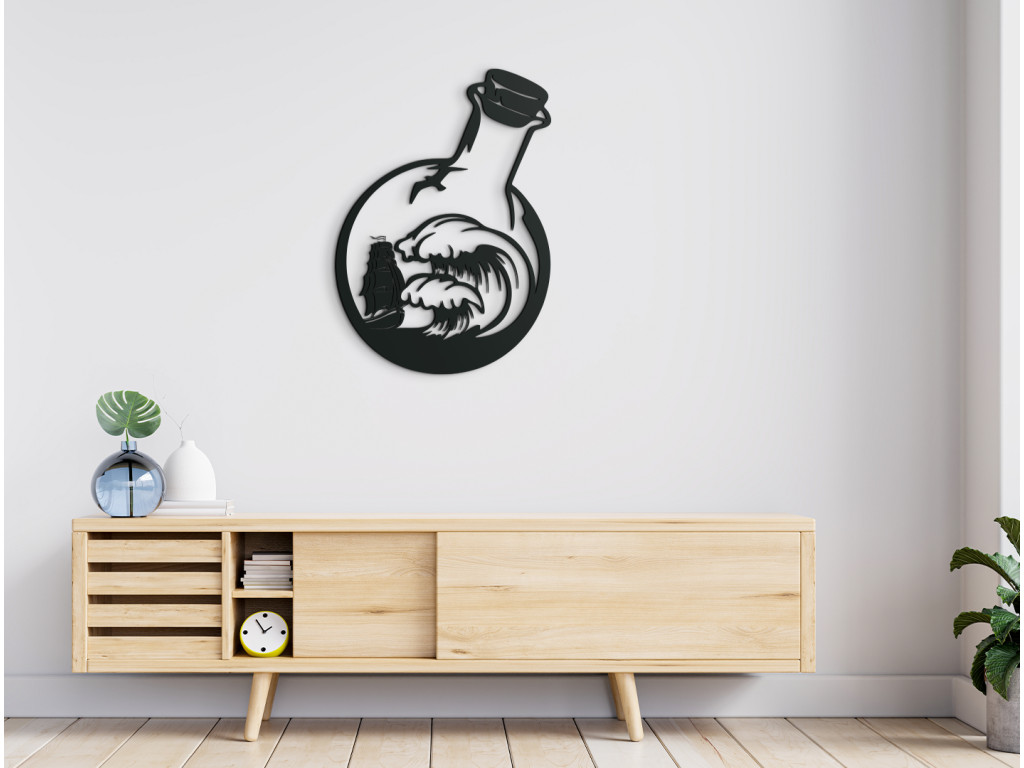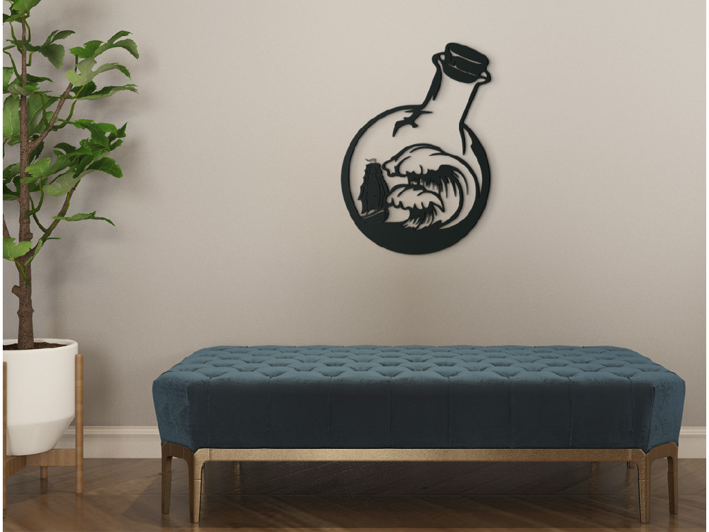 A tengeri motívumú fali dekoráció minden teret hangulatossá tesz. A tengeren úszó csónak egy elveszett üzenetre emlékeztető üvegben található. Minden unalmas falat élénkebbé varázsol az előszobában, folyosón, étkezőben és gyerekszobában. Több színváltozat közül választhat.