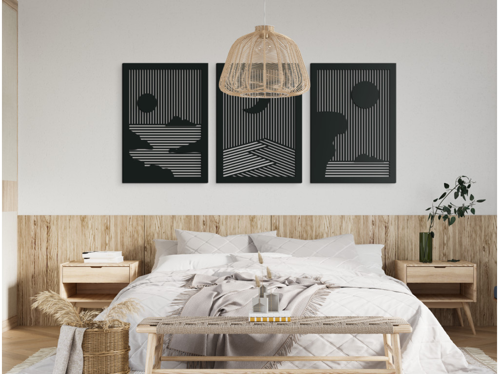 A Nap és a Hold faragott képe remek dekorációs eleme egy lakásnak, háznak. Az eredeti kialakításnak köszönhetően könnyedén összeillesztheti a lakásban található bútorokkal, dekorációkkal. A kép tökéletes a nappaliba, konyhába, előszobába vagy folyosóra, ahol az otthon melegét és a természet illatát varázsolja a szobába. Az egyes részeket együtt, de igény szerint több helyiségben külön is elhelyezheti.