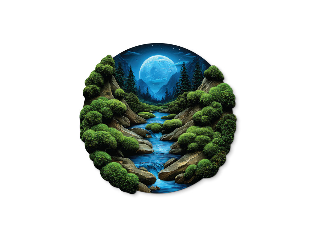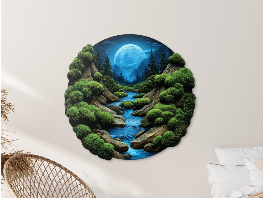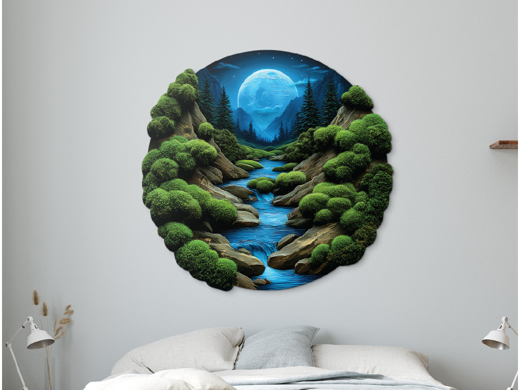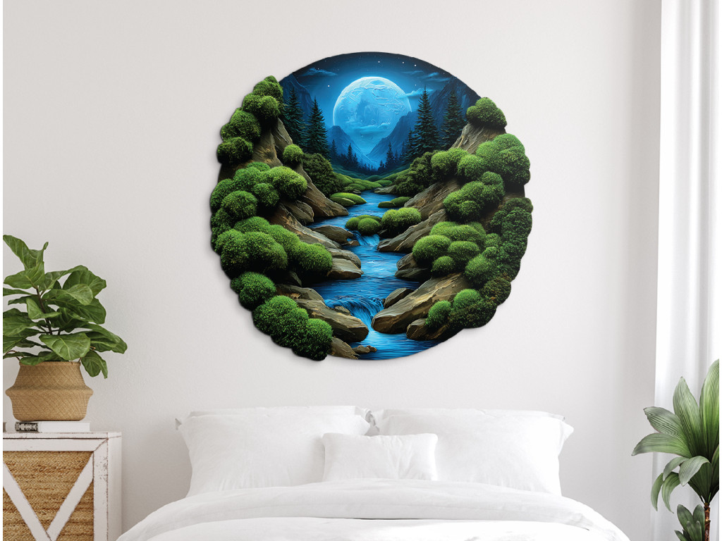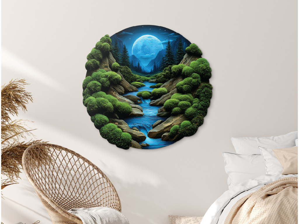 Tlačený machový obraz Nočný potôčik (Kép mérete 86 x 90 cm, Felületkezelés 3D)